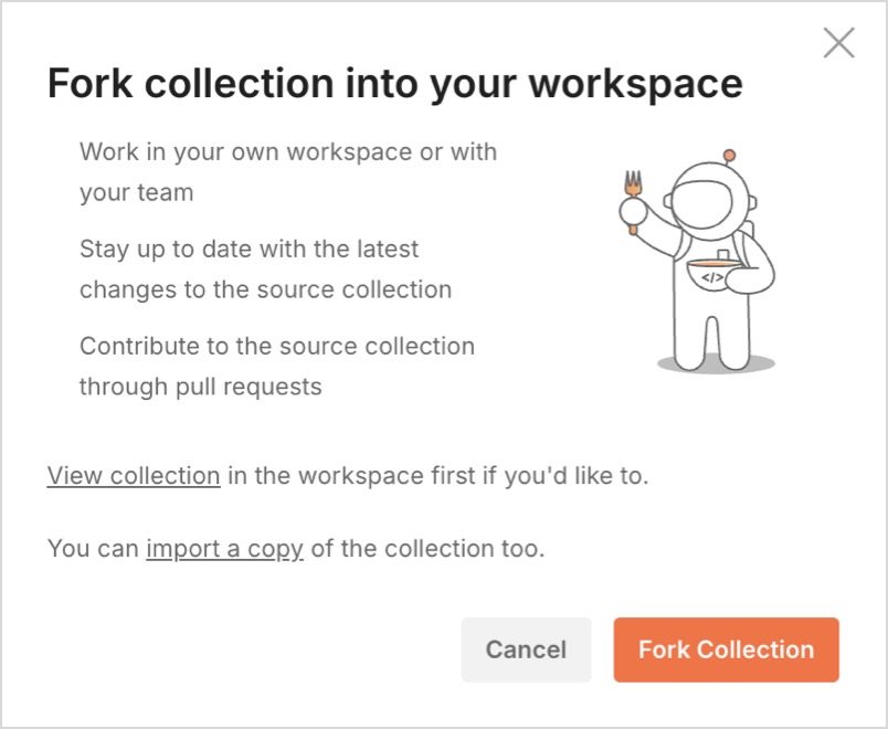 - Click Fork Collection to complete the process. The collection will now be available in your workspace.