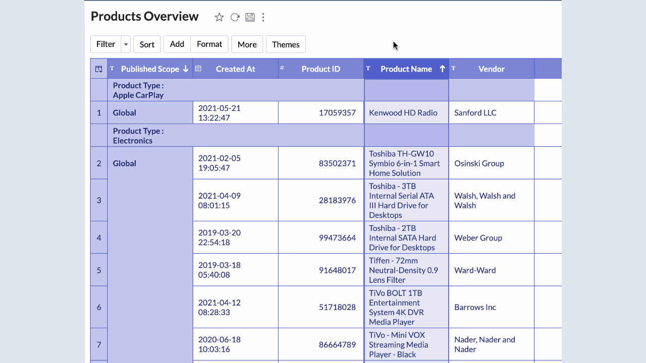 You can modify your Tabular View - format, sort, apply themes, and tailor it to your needs with our wide range of customization options.