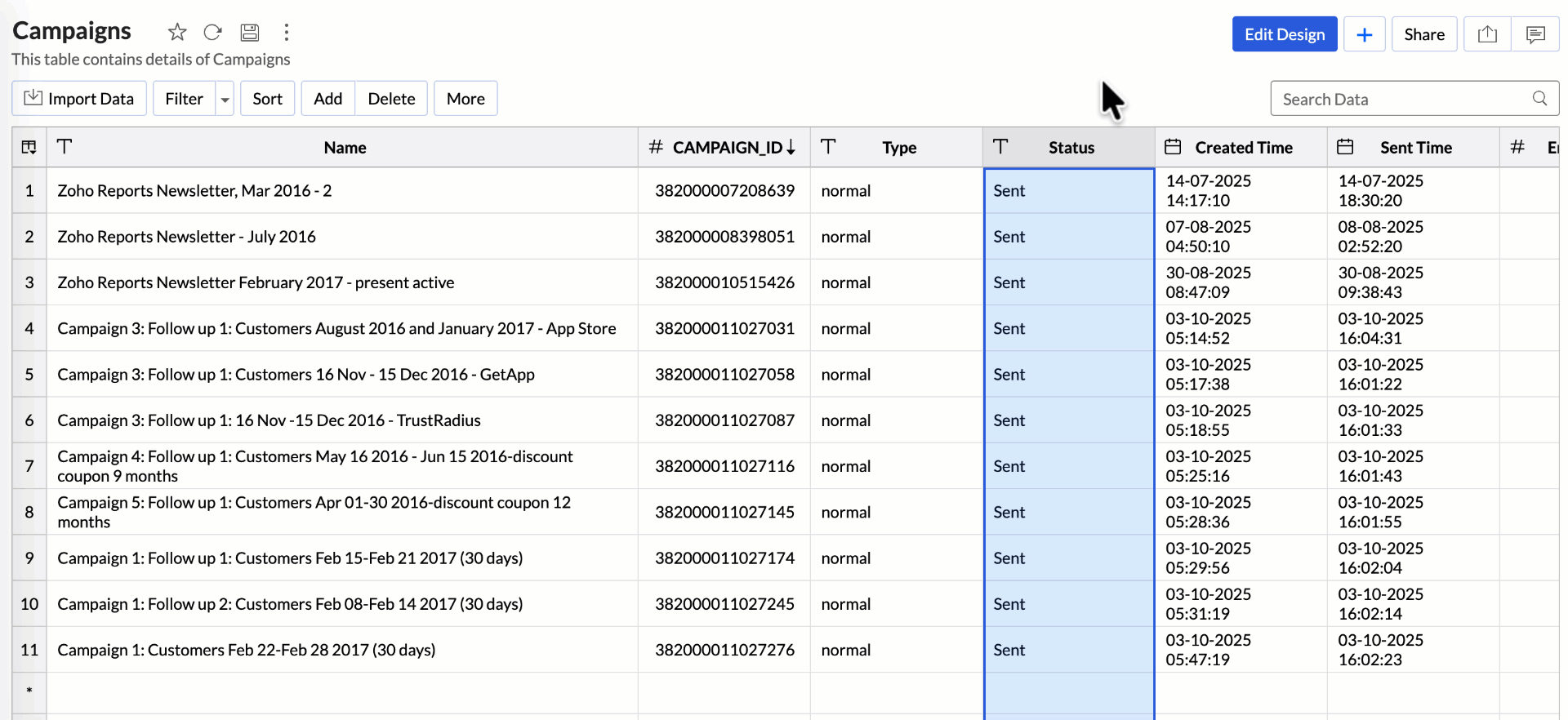 In many circumstances, you might have a similar data set, like that of an existing one, imported into Zoho Analytics. You might want to create reports on the new data set similar to the ones already available. In such scenarios, you can use "Similar to Another Table" option for easy report recreation.