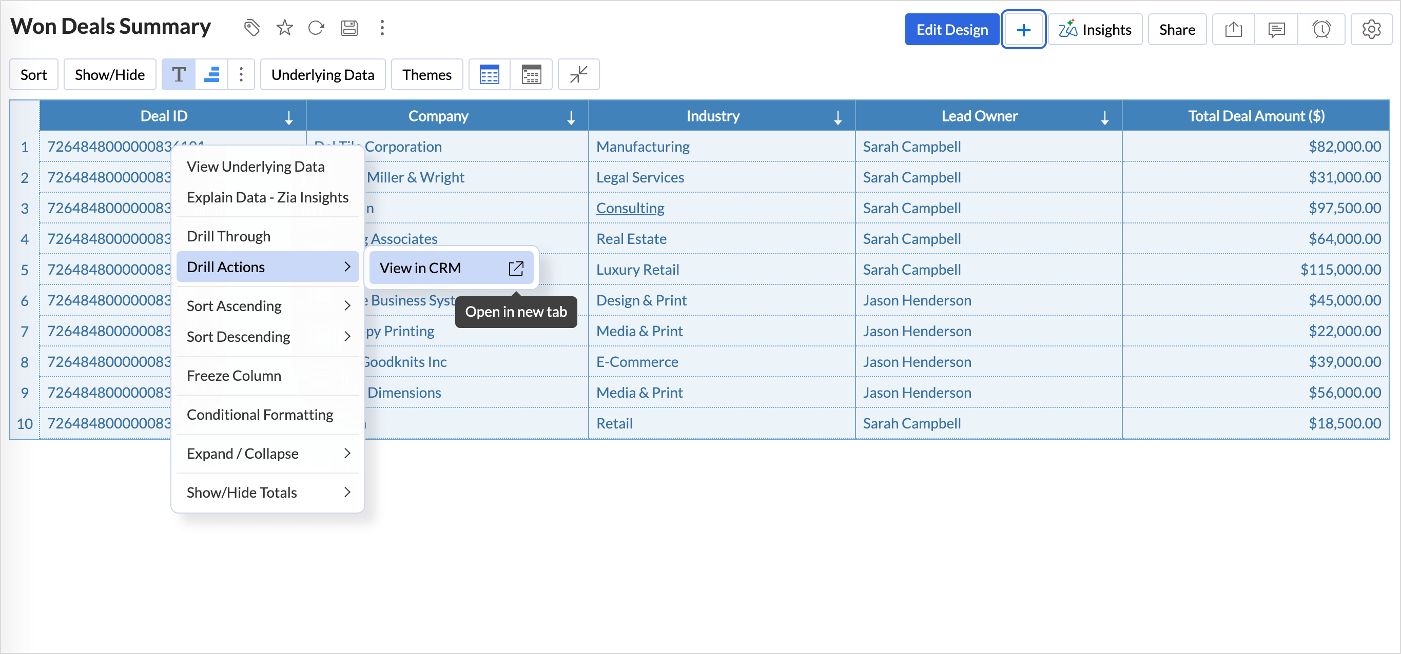 Once a drill action is configured, end users can execute it directly from the report. Here is how: