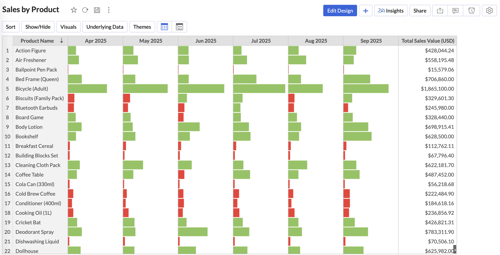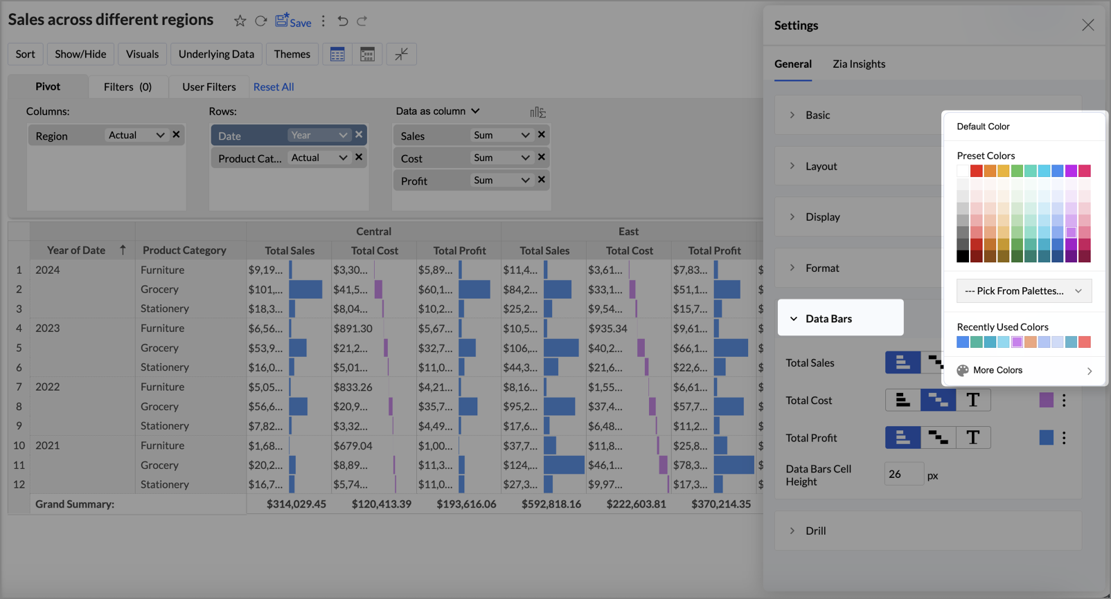 Zoho Analytics allows you to customize Data Bars appearance to match your data visualization needs better.