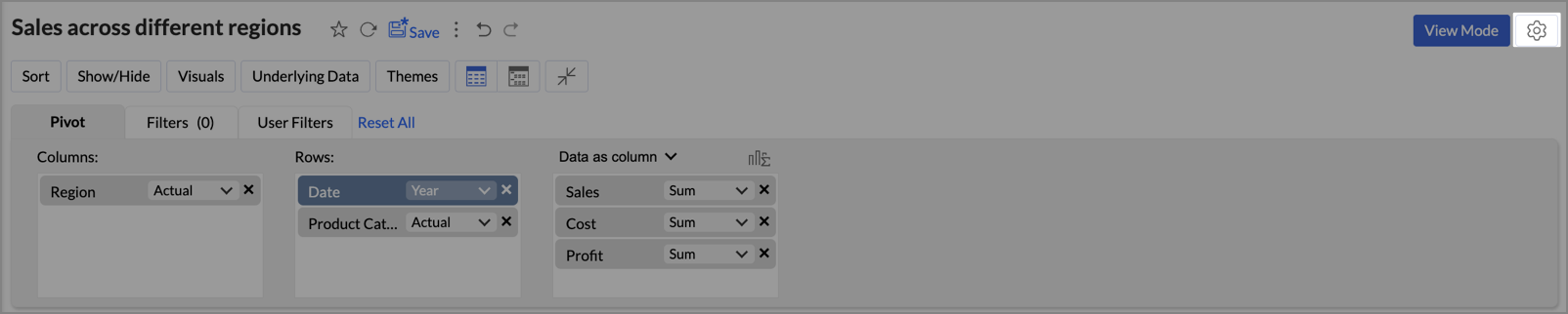 - Drag- and-drop the required fields to the columns, rows and data shelves.