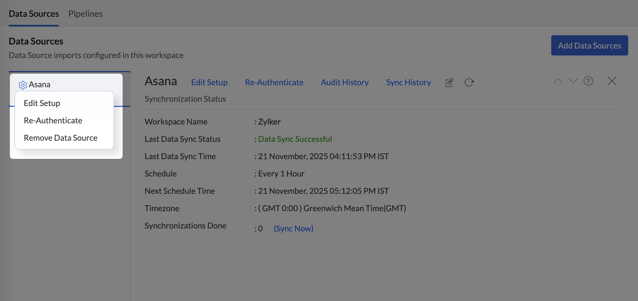 Users with Administrator Privileges can configure the connection between Asana and Zoho Analytics.