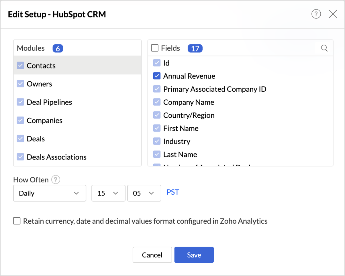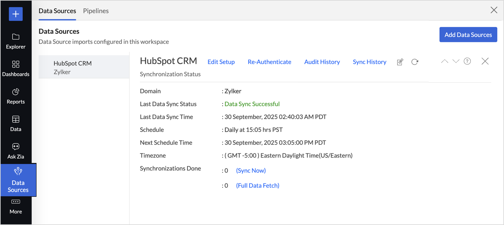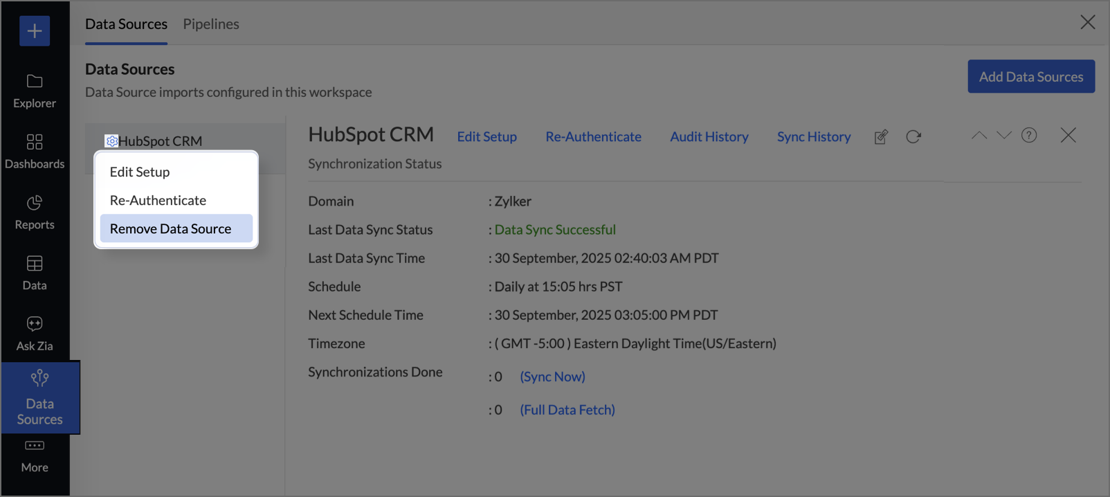 • These options only disconnect Zoho Analytics from HubSpot CRM.