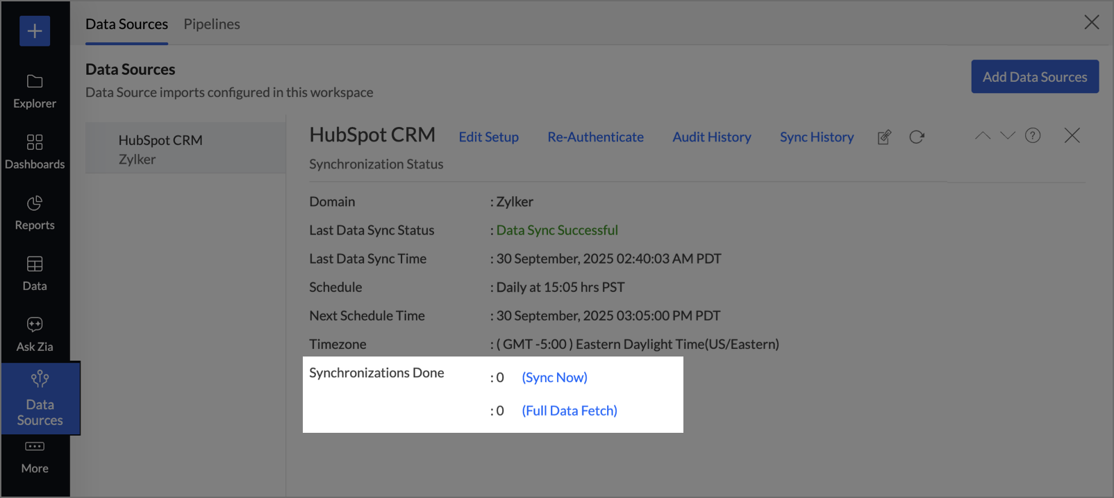 • The Full Data Fetch option can be used to sync all the changes made in the HubSpot CRM application, like datatype changes, or to resolve temporary sync issues.