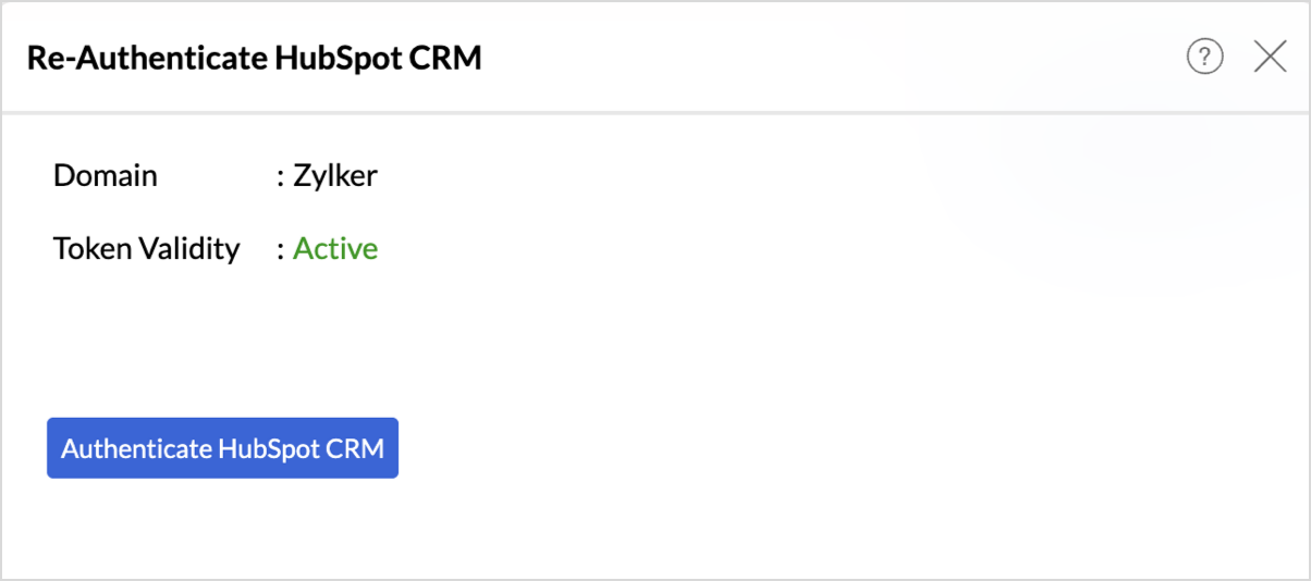 2. The Re-authenticate - HubSpot CRM dialog will open. Click Authenticate HubSpot CRM to re-authenticate.