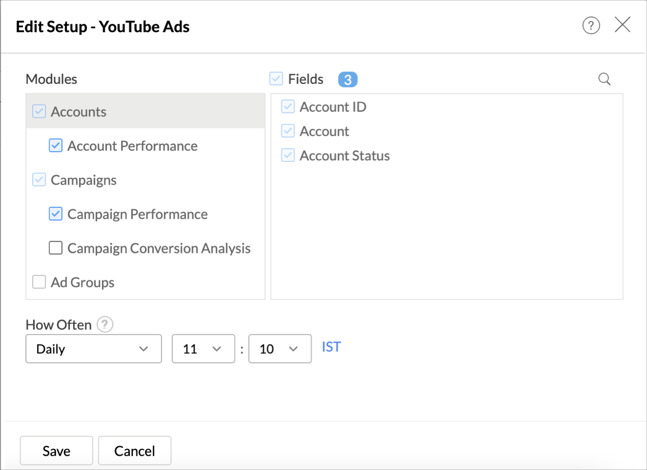 Users in any paid plan of YouTube Ads along with a paid plan of Zoho Analytics, Zoho CRM Plus or Zoho One can subscribe to this connector. Users with the Administrator roles can configure this connector.