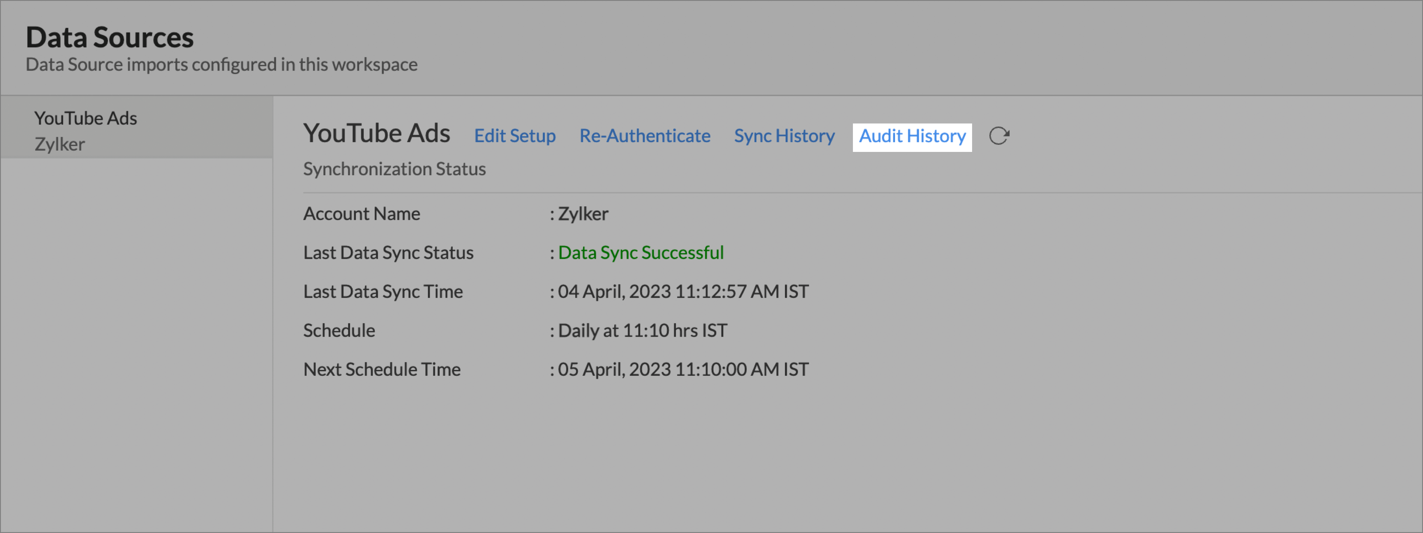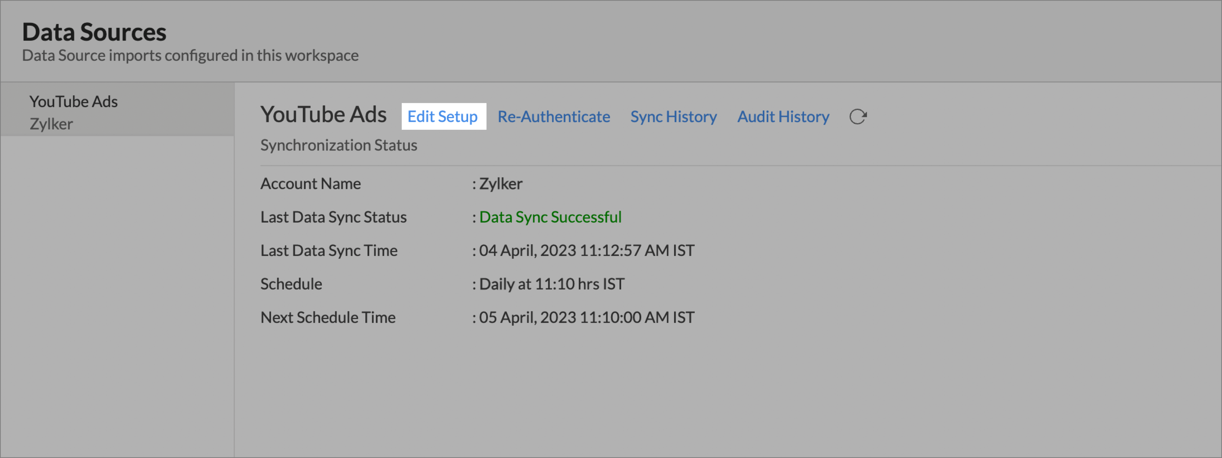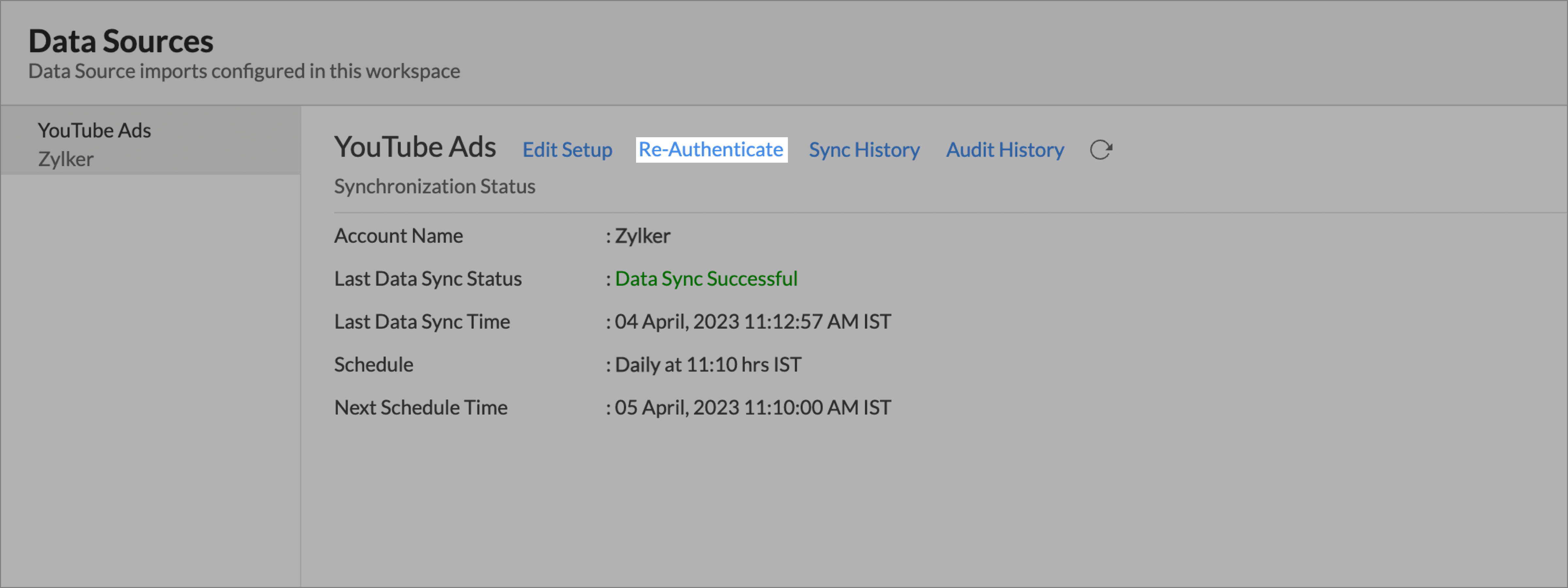 - How do I re-authenticate my YouTube Ads account in Zoho Analytics?