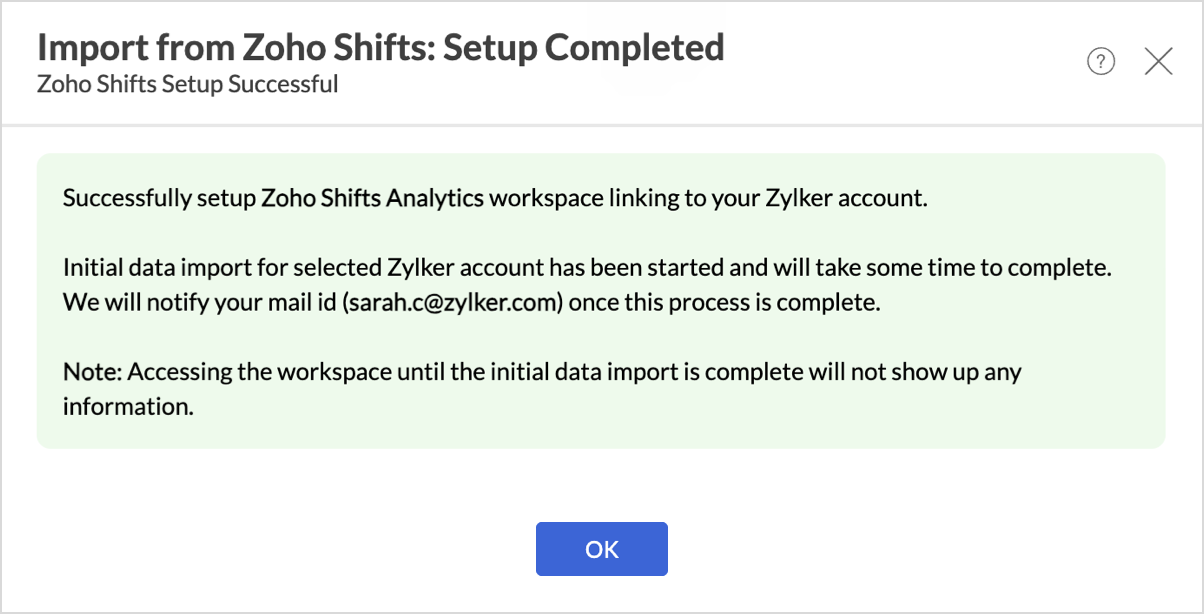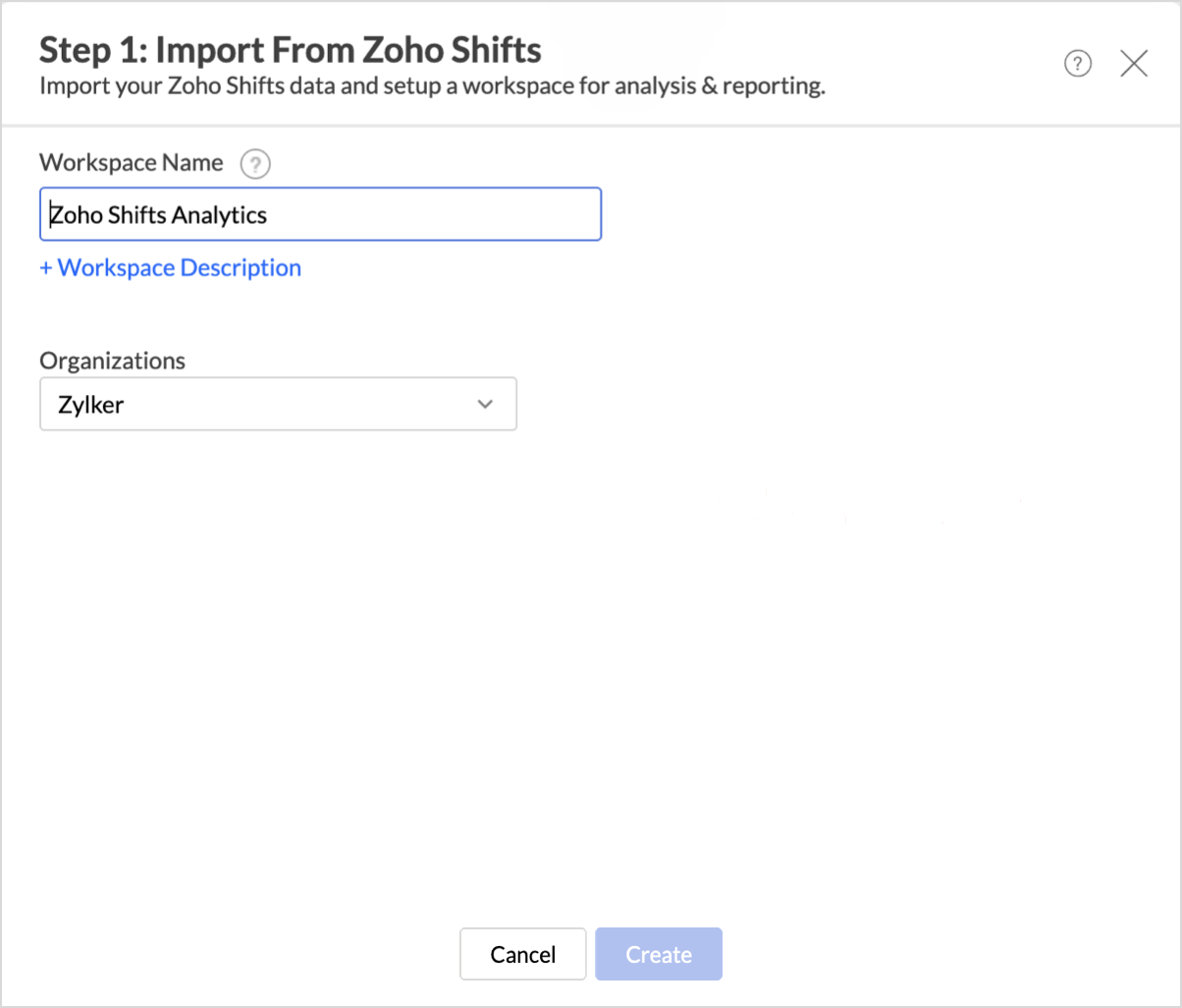 - The Step 1: Import from Zoho Shifts dialog will appear.