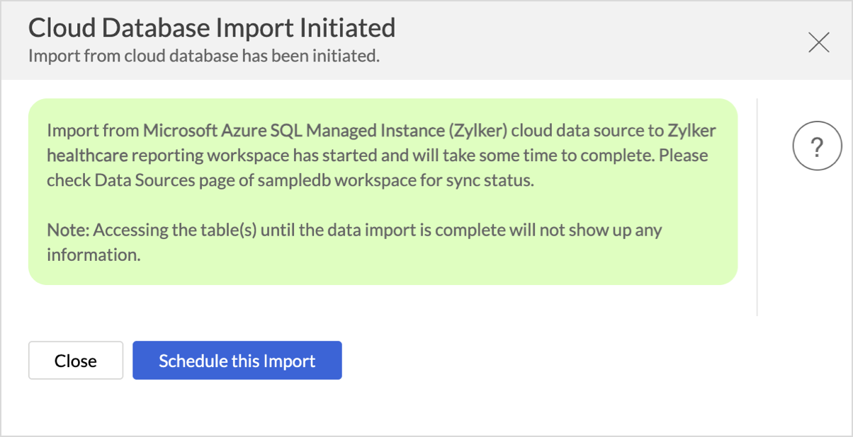 - Click Create. Data import will be initiated, and you can also schedule the import.