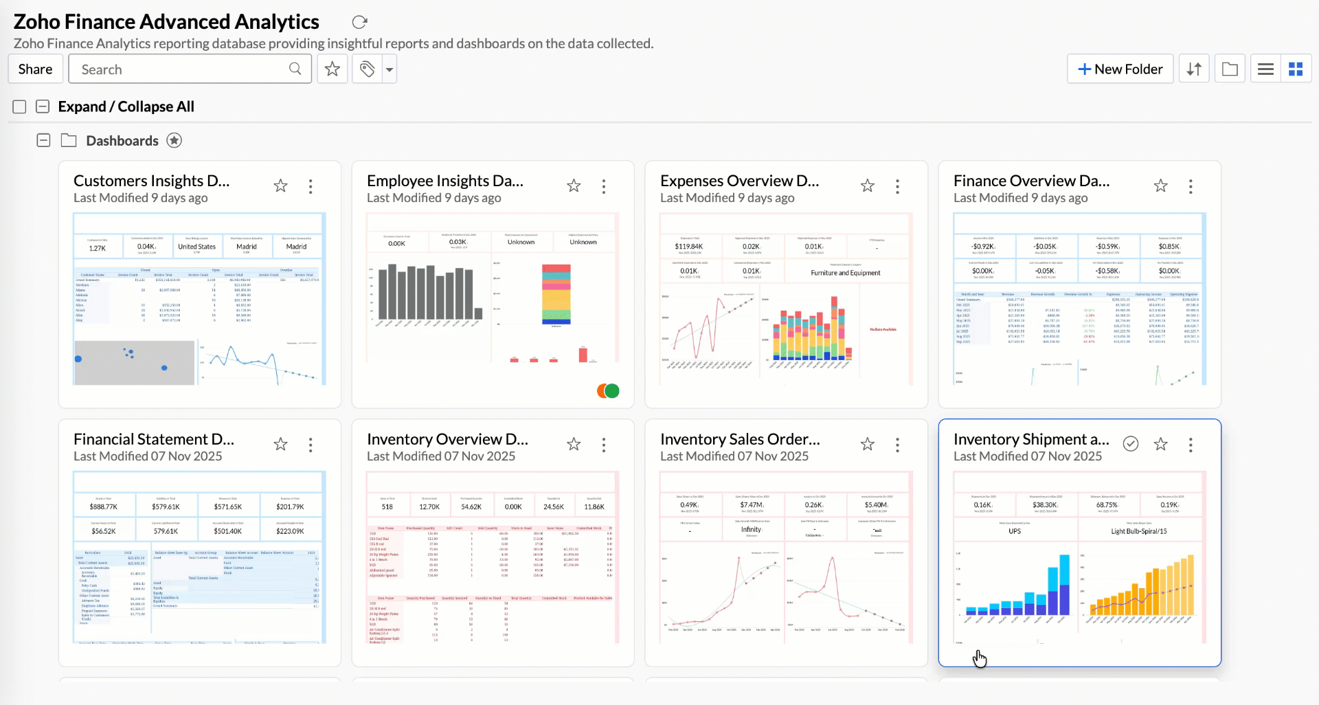 Yes, you can search for and find the required view in workspace explorer. Zoho Analytics provides a powerful search option to search views in the Workspace. This allows to specify the view type to be matched with the search term.