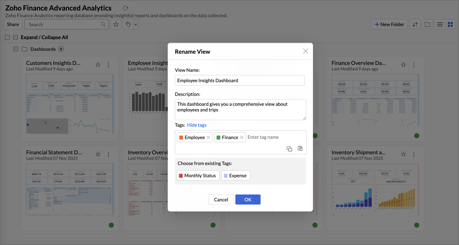 3. How to modify or remove tags in Zoho Analytics?