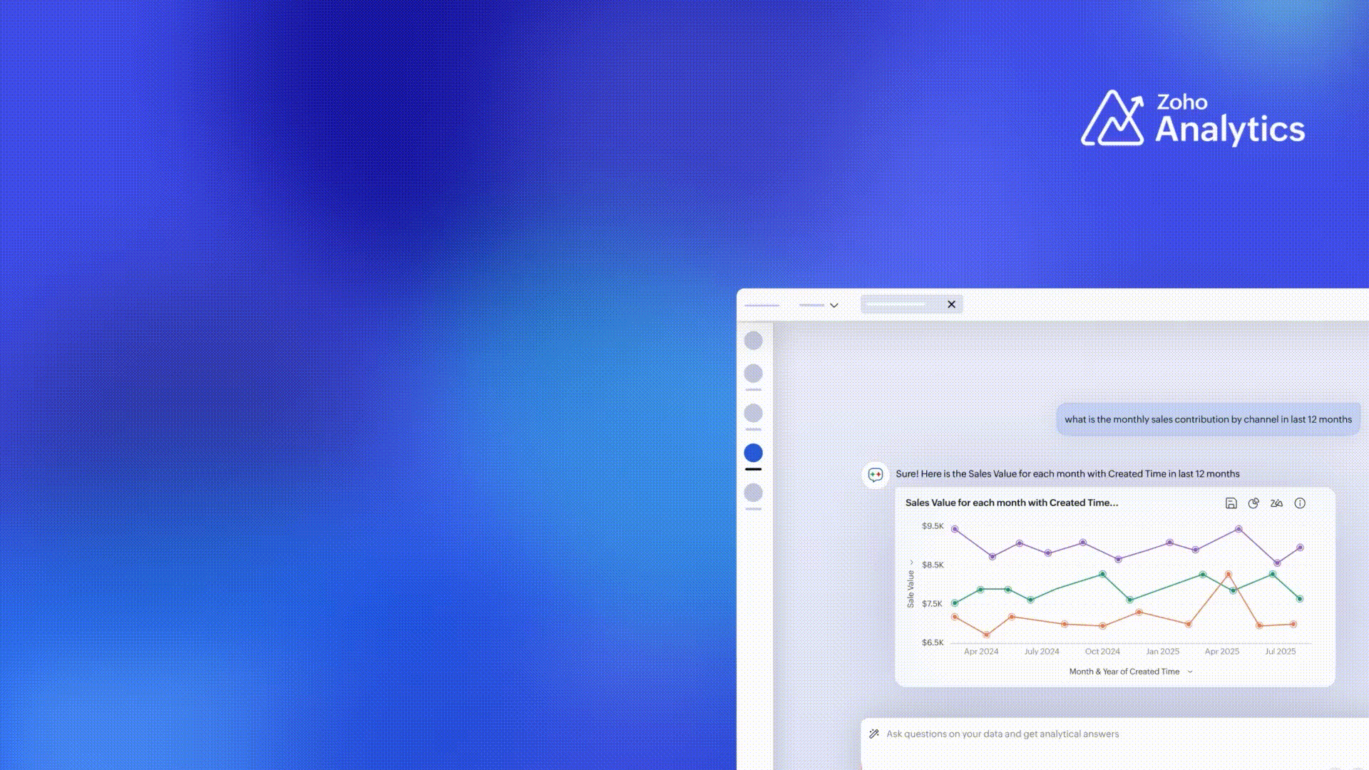 - Zia Suggestions: Receive insightful chart recommendations while you are in the creation process. Zia suggests a variety of charts suggestions tailored to your data, allowing you to preview and apply them seamlessly with just a click.