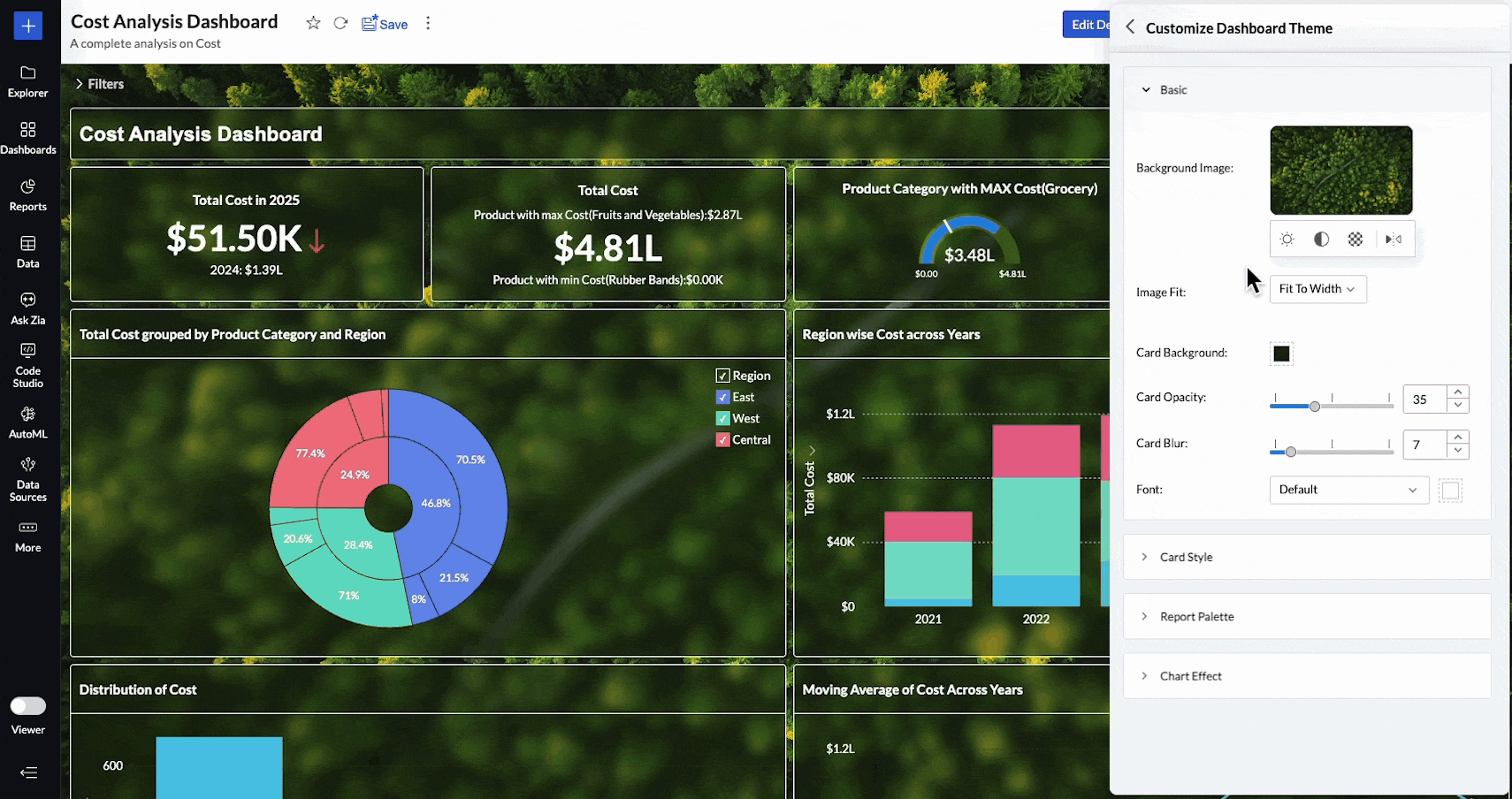 Elevate the visual appeal of your white labeled product and align it with your brand through the CSS customization feature. This latest addition to Zoho Analytics enables you to customize text, colors, and more on pages, tabs, selections, hover options, enhancing the overall look and feel.