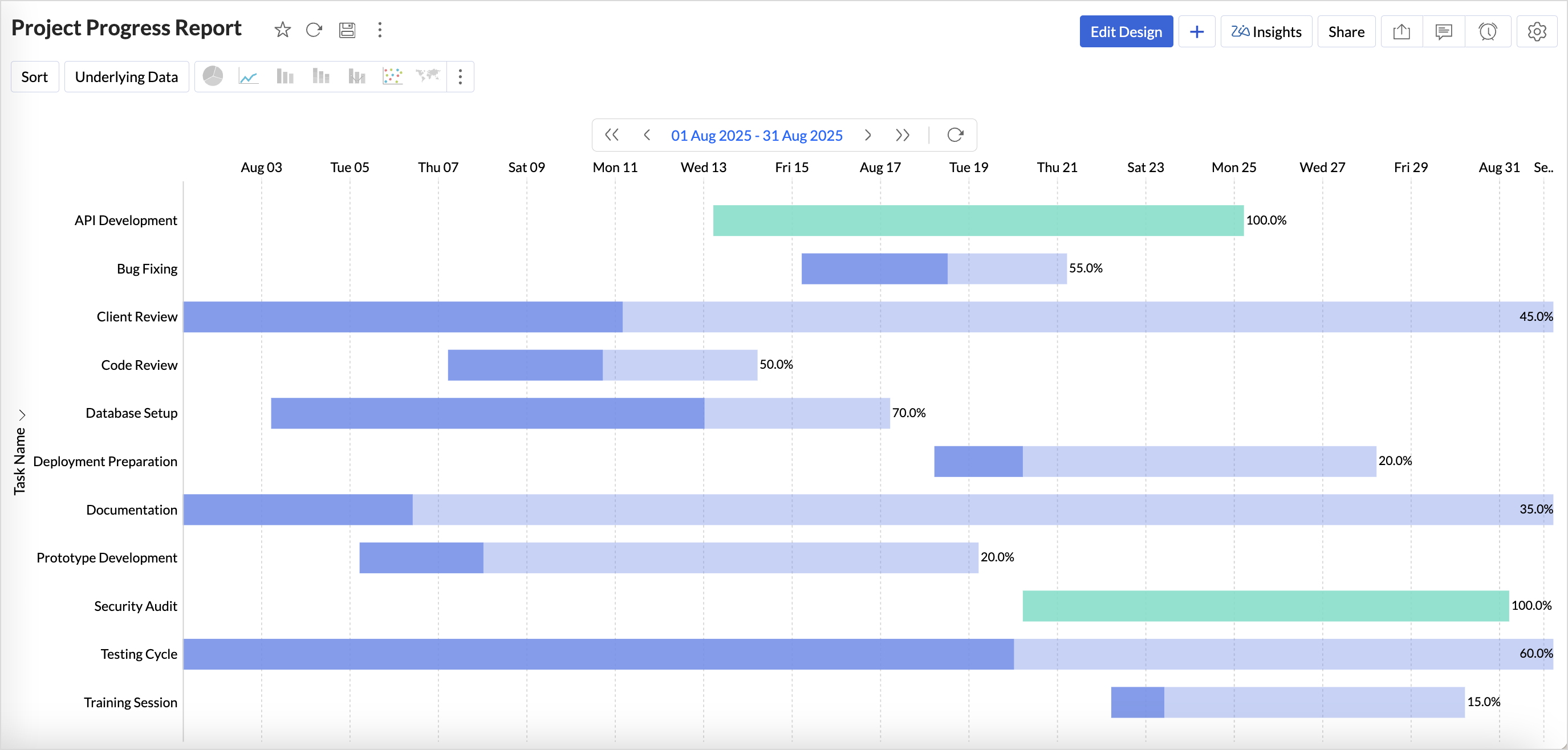 Effortlessly bring workflow and process data from Qntrl into Zoho Analytics. Build reports to analyze task progress, approvals, and operational efficiency.