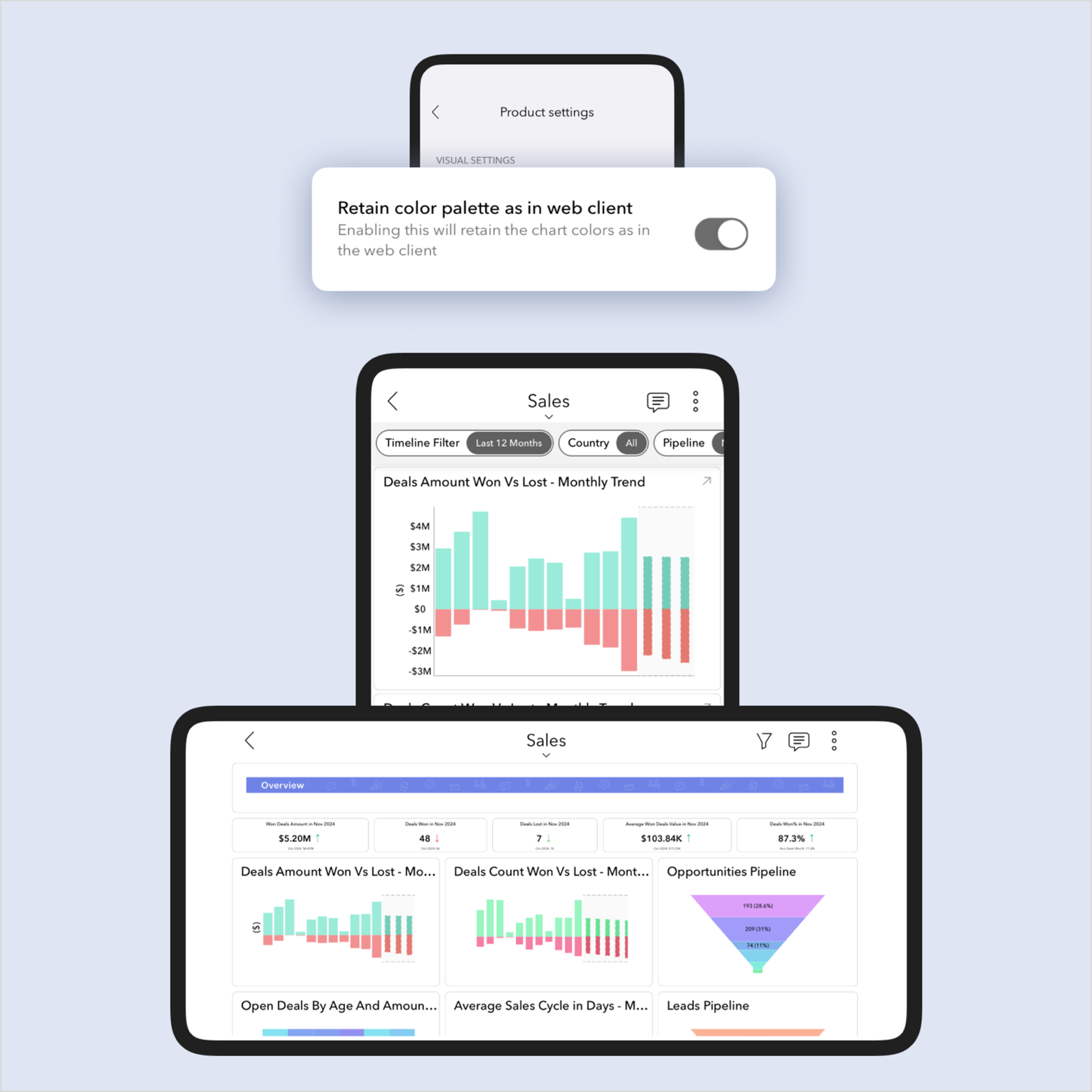 - Zoho Analytics Mobile App: The Zoho Analytics Mobile app has been upgraded as a native app, optimized for your specific device. This enhancement provides faster loading times, high-quality visuals, and advanced security features specific to your device's operating system to protect your data.