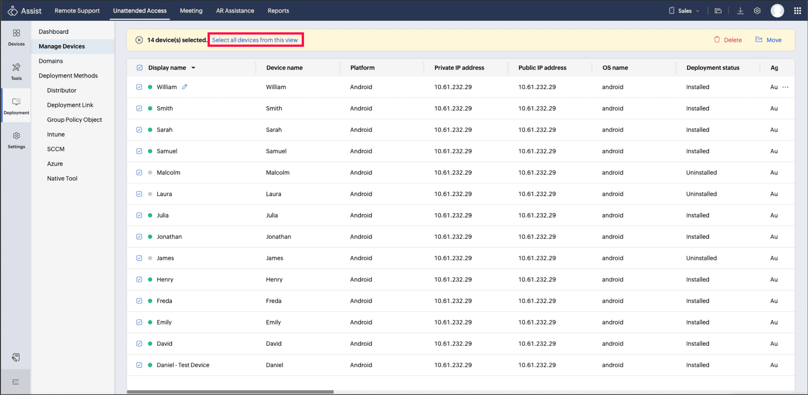 - Select the checkbox beside Display Name and click Select all devices from this view.
