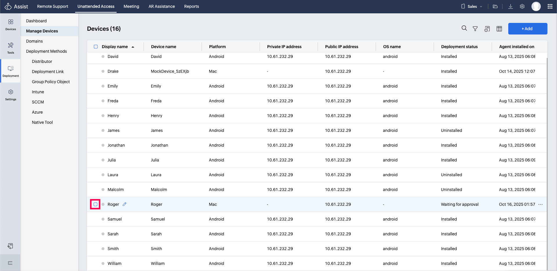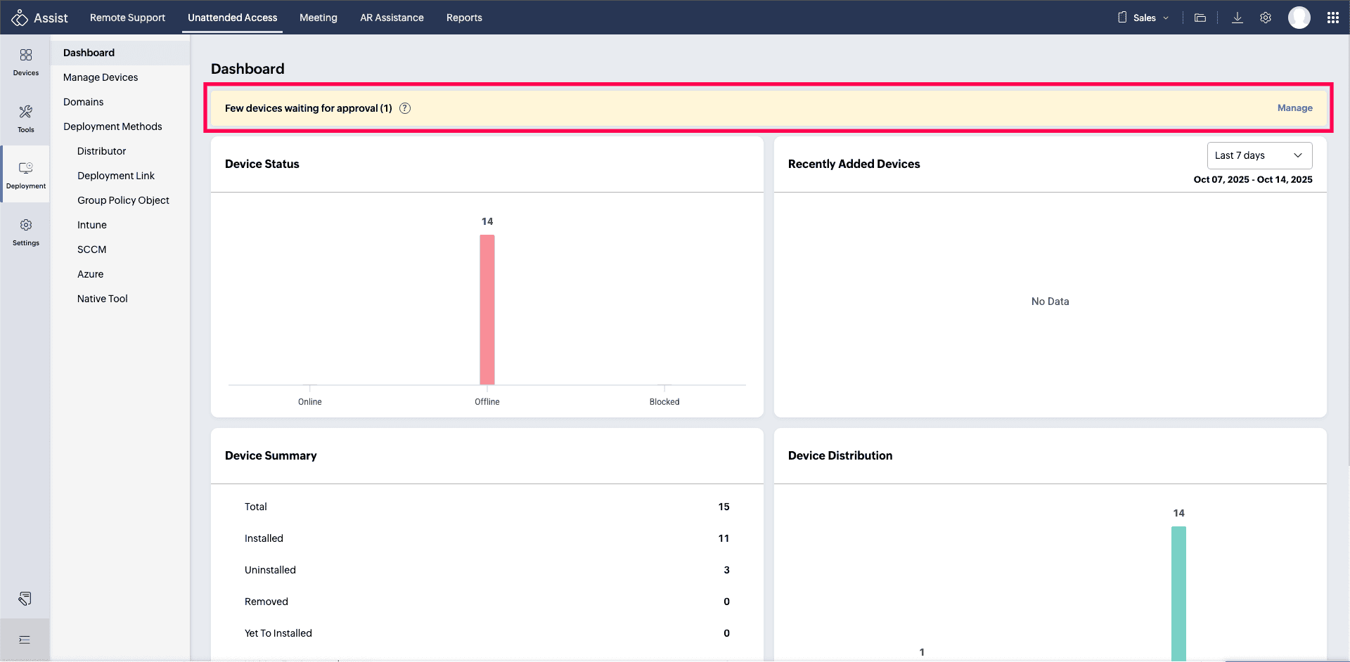 - Go to Unattended Devices > Deployment > Manage Devices.
