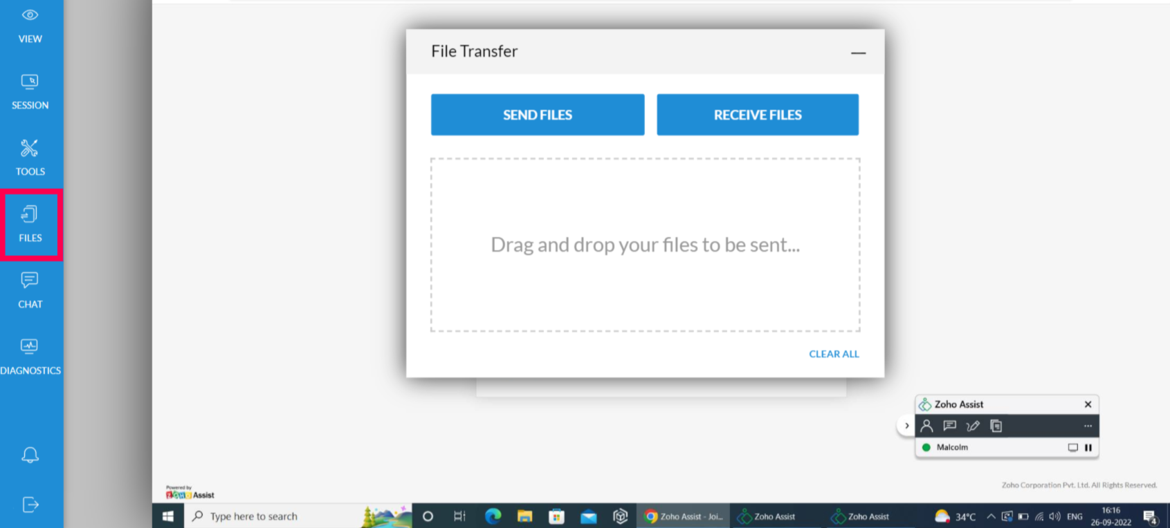 Once the customer joins the session, you can communicate with them using the built-in chat window. This helps guide customers through installations or troubleshooting.