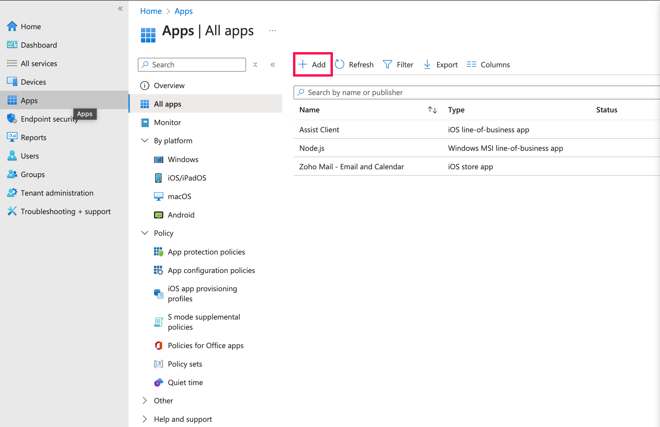 - Log into your Microsoft Intune account.