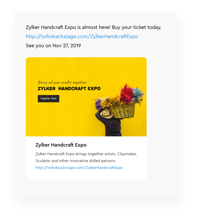 Send the message about your event far and wide through social media. Embed promotional banners on other websites and blogs, as well as sharing them using your own channels.