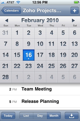 Zoho Projects Calendar looks good, I will try it on my iPhone. Earlier I've used HyperOffice which lets you synch mail, calendars, contacts and tasks with your iPhone. Thanks for putting up such an helpful calender app for iPhone. Allison from iPhone Development company.