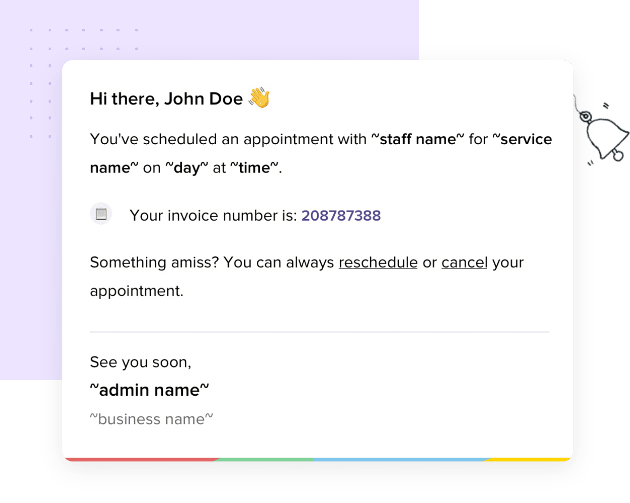 Write personalized and contextual content to connect with your customers. Insert variables like appointment time and meeting links to change the emails and SMSes dynamically. Customize sender address to send emails from the mail ID your customers are familiar with. Have an HTML template for your emails? You can upload that, and send good-looking emails that bolster your brand.