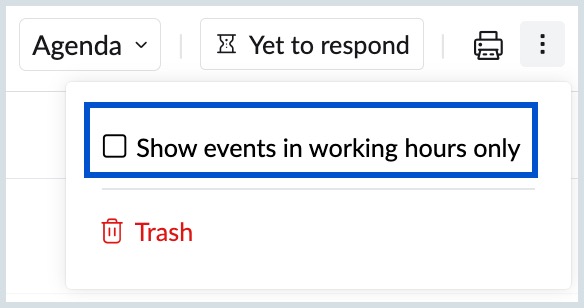 - When you choose the Agenda view, you can choose to show/ hide the events that occur during your non-working hours.