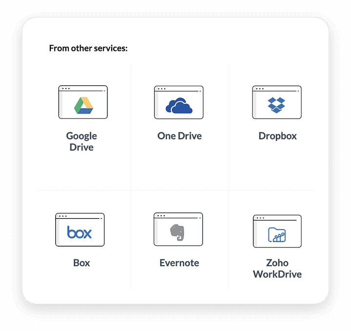 Simplify your sales and marketing process by importing contact details from your local storage and 45+ day-to-day business applications like Salesforce, Zoho CRM, Bigin by Zoho CRM, and many more. Or if you have fewer than 20 subscribers, you can simply use our manual entry. Also, don’t worry about duplicates, bounces, and unsubscribes as they’re automatically removed.