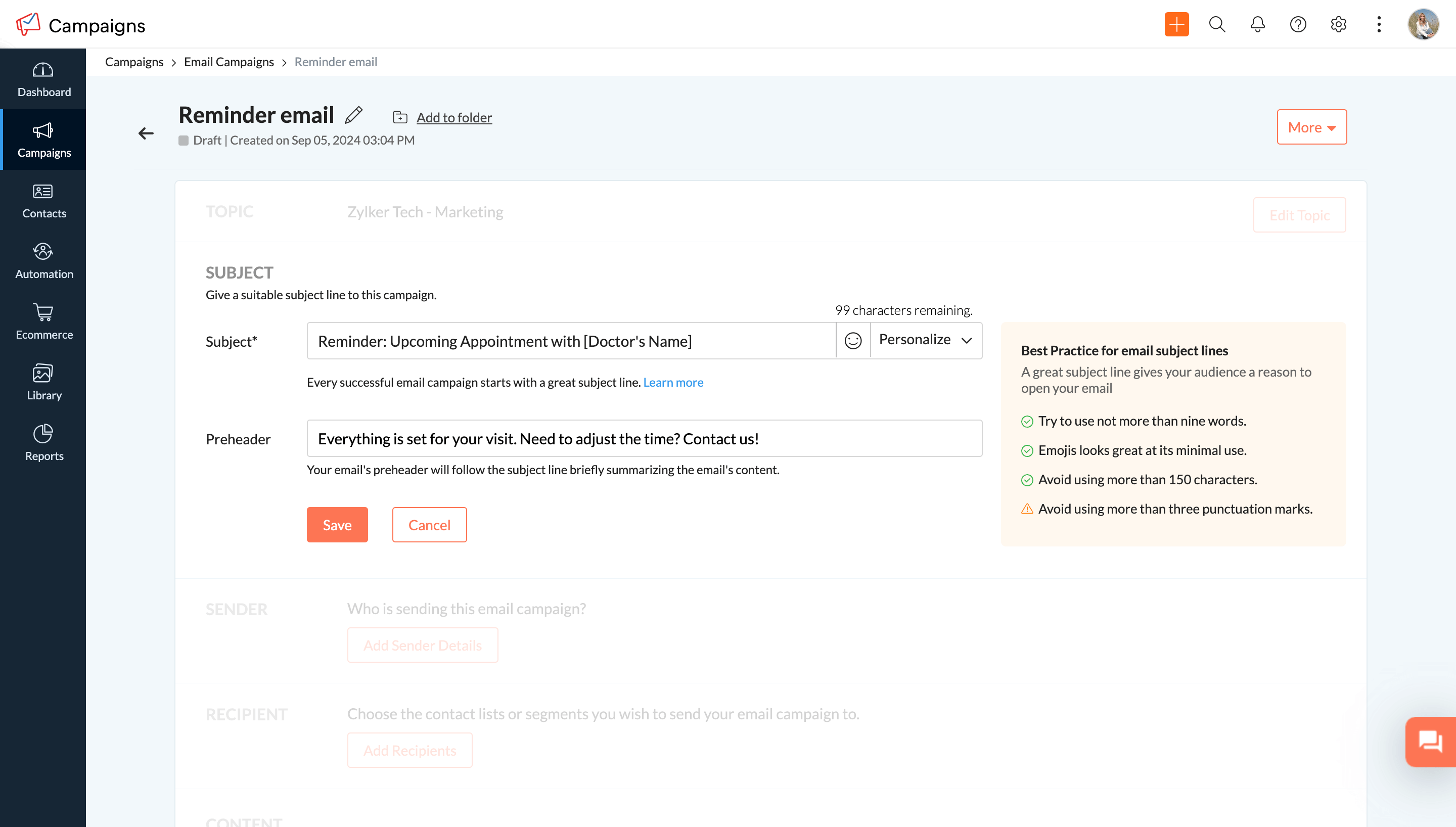 Zoho Campaigns can automate appointment reminders, send personalized treatment plans, and share health updates to ensure patients are informed and engaged.