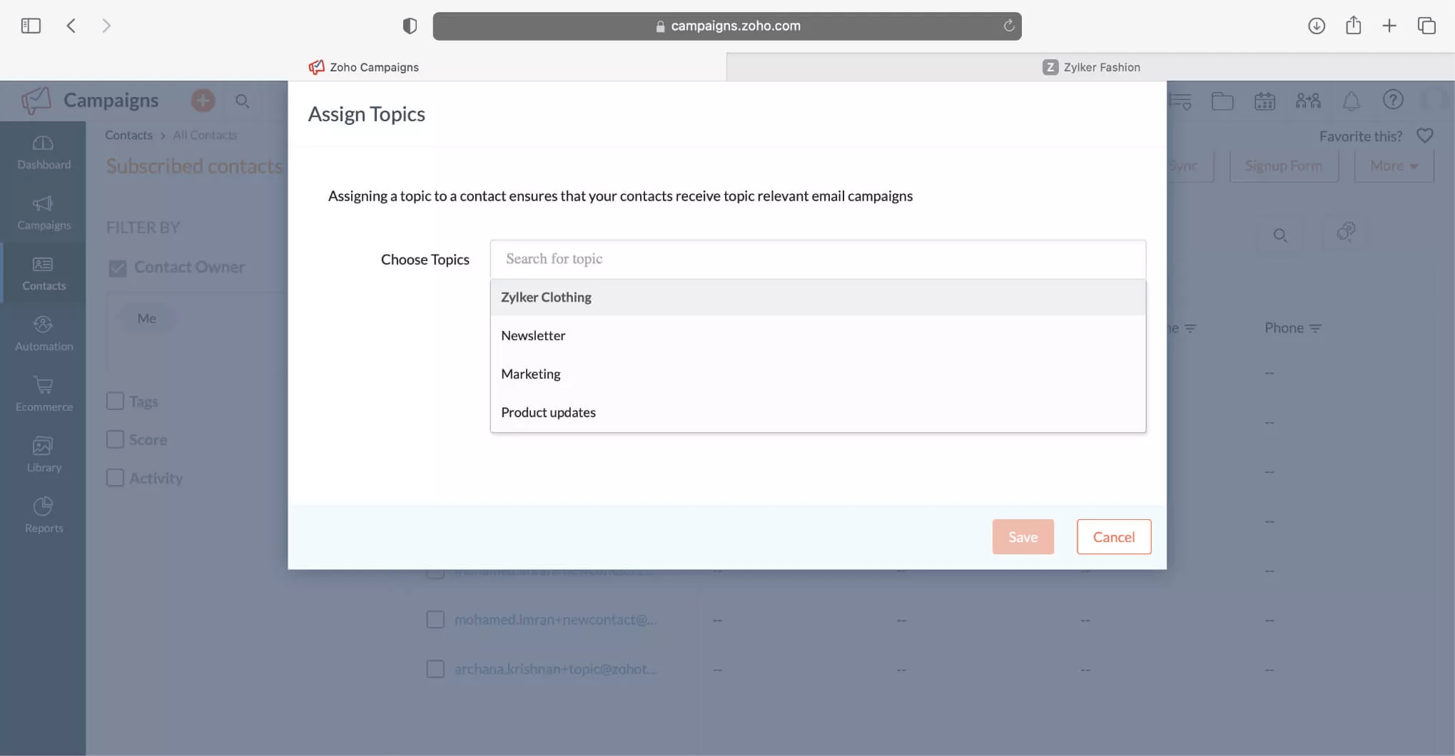 While your contacts can choose their topic preference, you as a marketer can also assign topics to them. At the time of contact addition or import, you can assign the right topics to your contacts. This will help you organize your contacts better and send them targeted information.