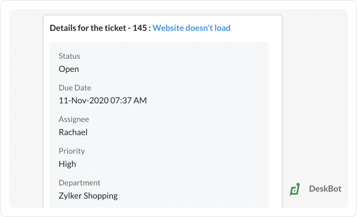Receive notifications and stay updated on the support tickets raised by your customers, and take necessary actions from your chat window.