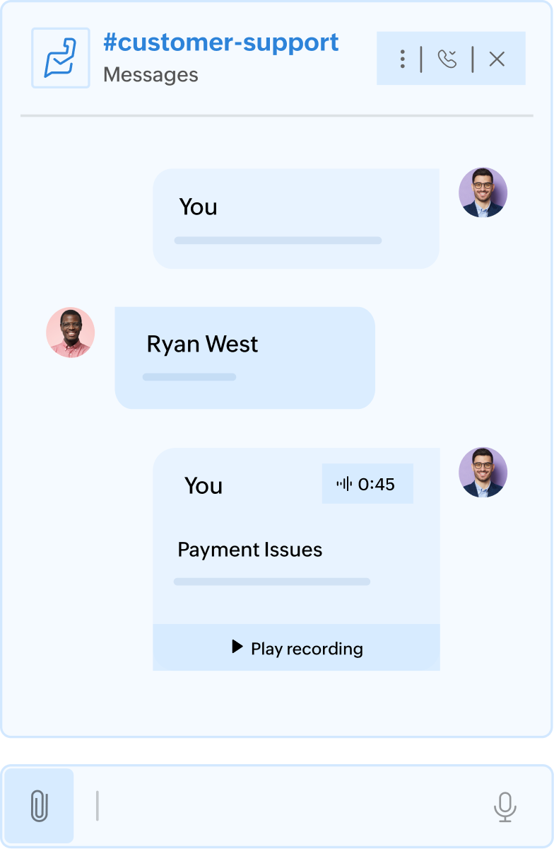 Sales representatives are often required to communicate with other departments to obtain information. With the multi-chat view in Zoho Cliq, collaborate with more than one person or team simultaneously without switching windows.