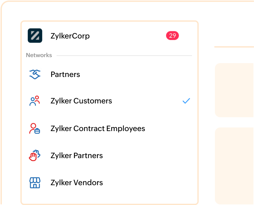 Stay in touch with your customers and build a community of product evangelists by setting up a dedicated external collaboration platform with Cliq Networks. Address customer questions while communicating with your colleagues from the same account.