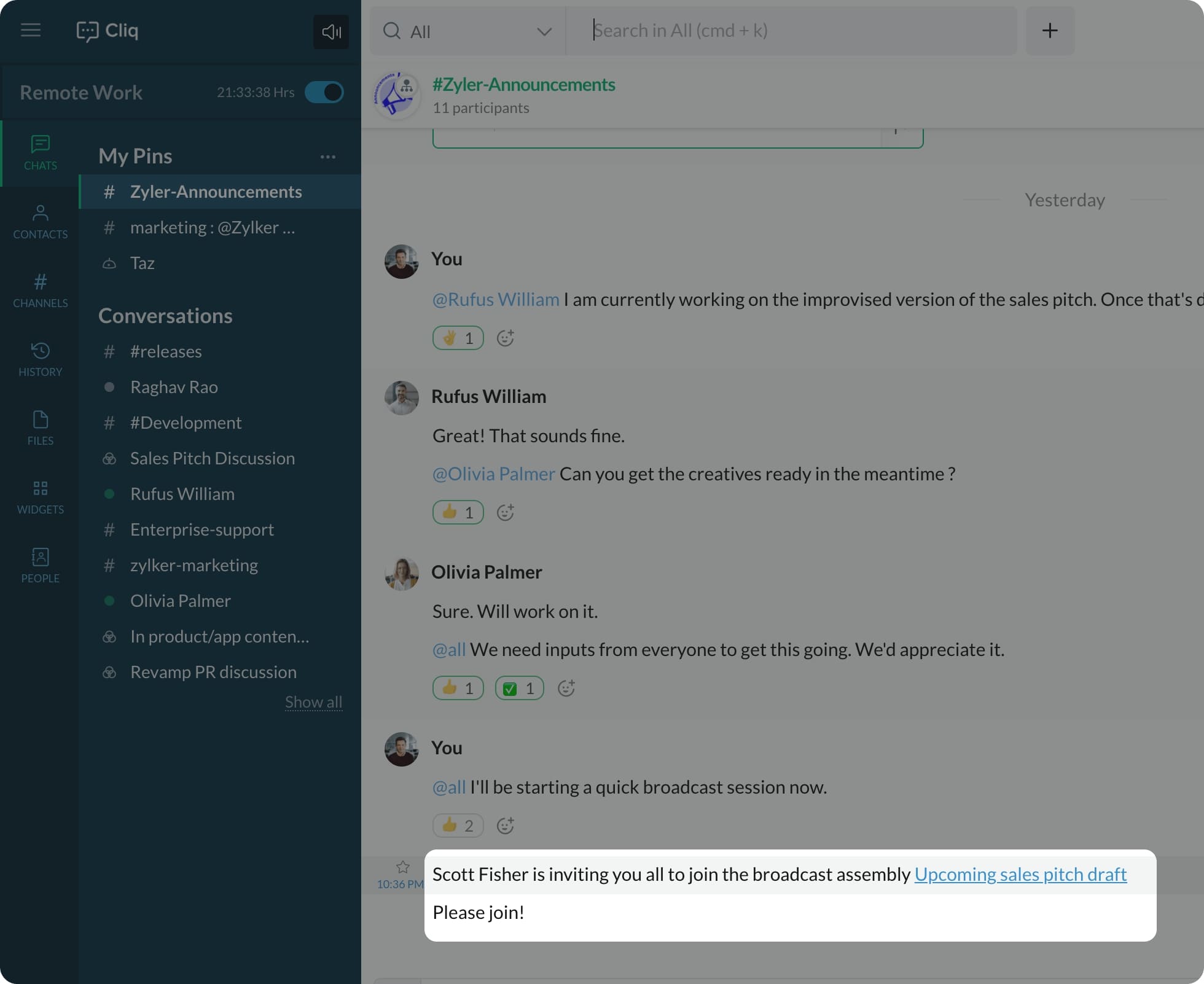 Click the Broadcast link to join