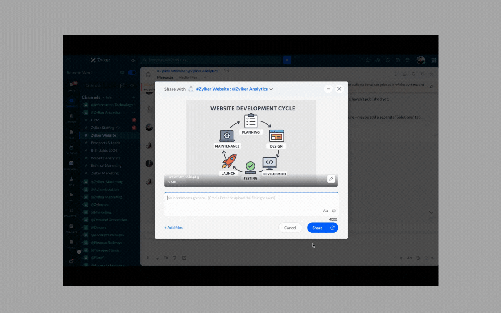 NewAccelerate the way you attach media, files, location, etc with our new and improved attachment sheet. You can choose to attach files directly or convert documents, agreements, checks, business cards, receipts, etc. into crisply cropped pdf with Cliq's Document Scanner. Here's how:
