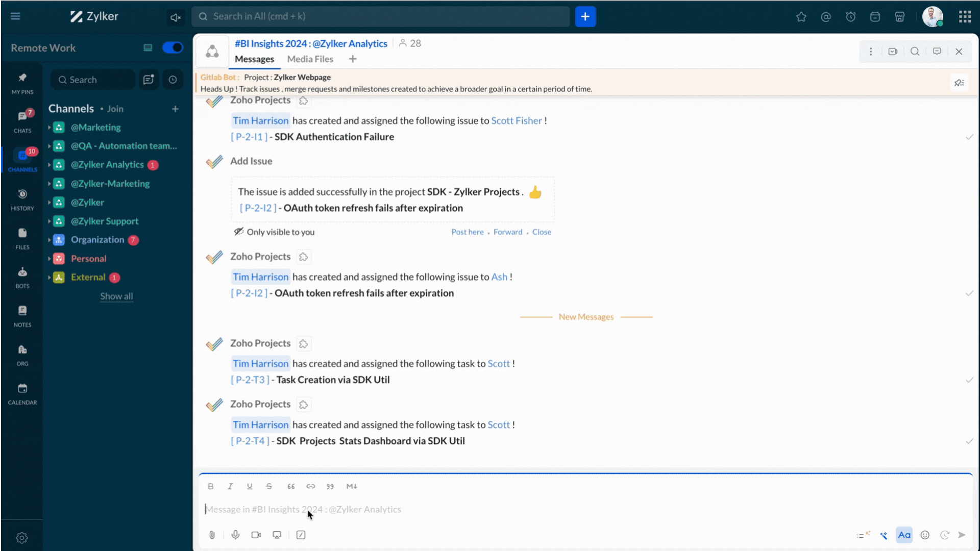 Create Zoho Projects tasks without leaving the chat