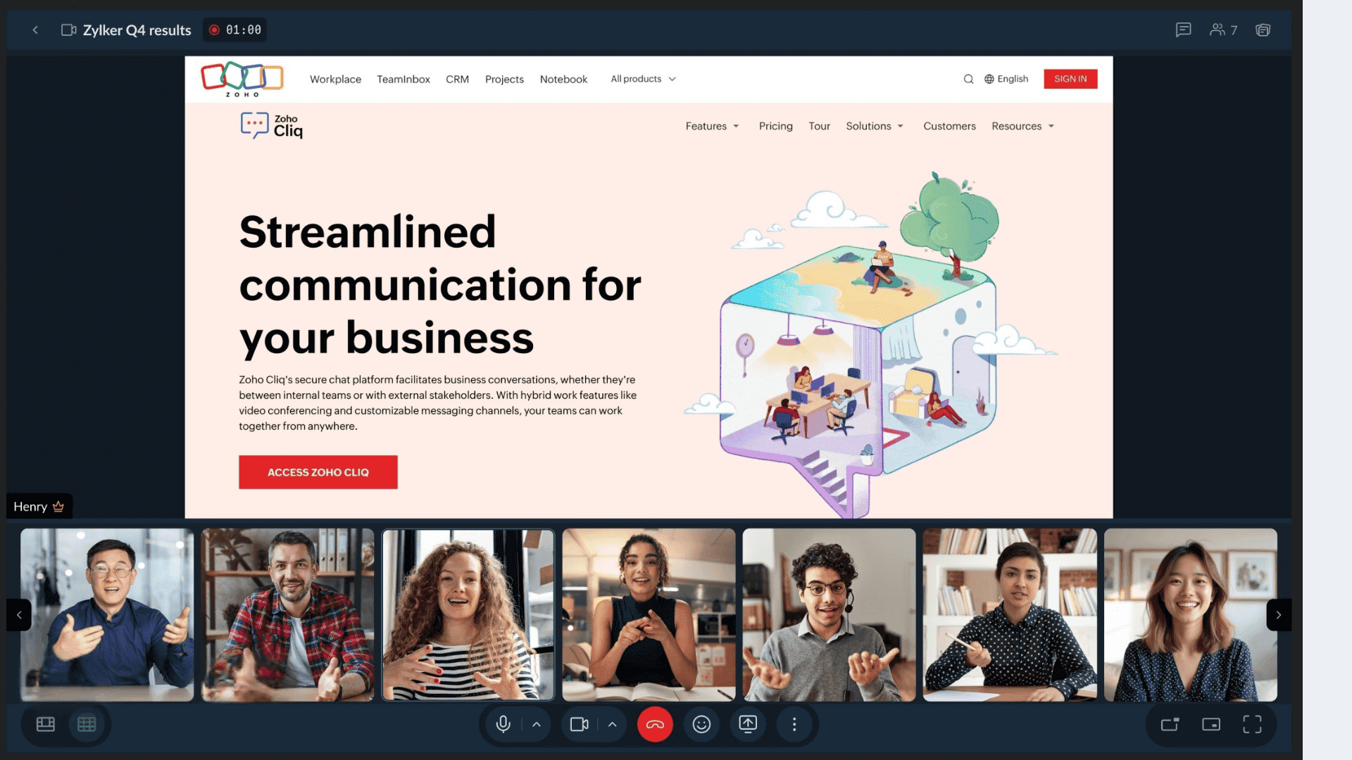 EnhancementsCliq calls just got upgraded both visually and under the hood. So give your fingers some rest and converse over Cliq calls. Additionally, you can also record and send an audio/video message in case your call gets missed.