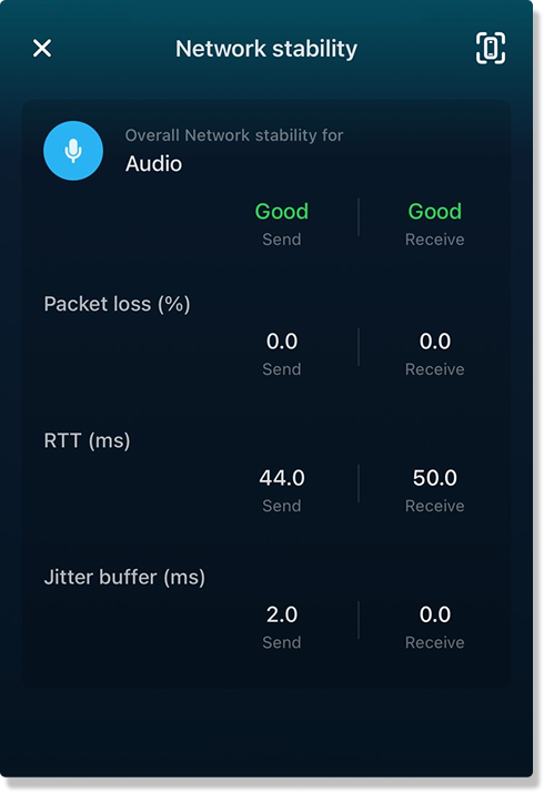 AndroidMeeting network statistics are now available on the Zoho Cliq Android app, allowing you to monitor your network performance during meetings. With clear metrics and an easy-to-understand score, you can quickly determine if any lag is caused by your network.