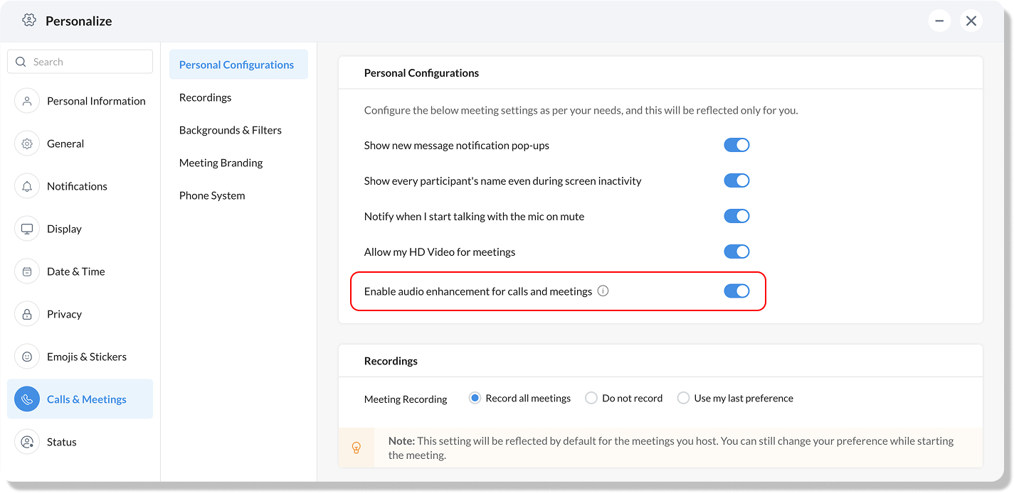 EnhancementsSay goodbye to background noise. You can now enable noise cancellation during your calls and meetings for a clearer call experience.