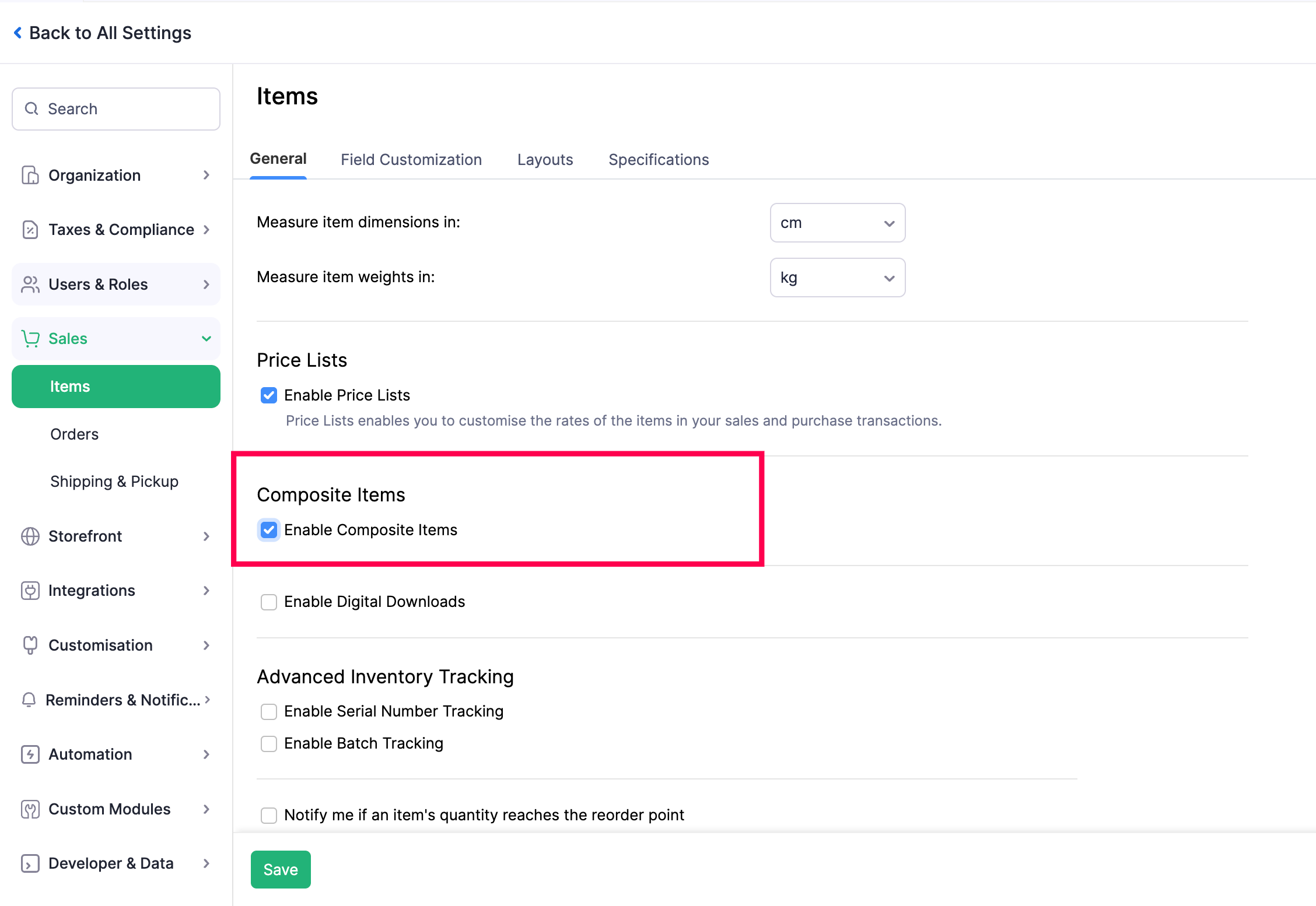 You can enable Composite Items to create a single product by combining two or more individual items and/or services. Here’s how: