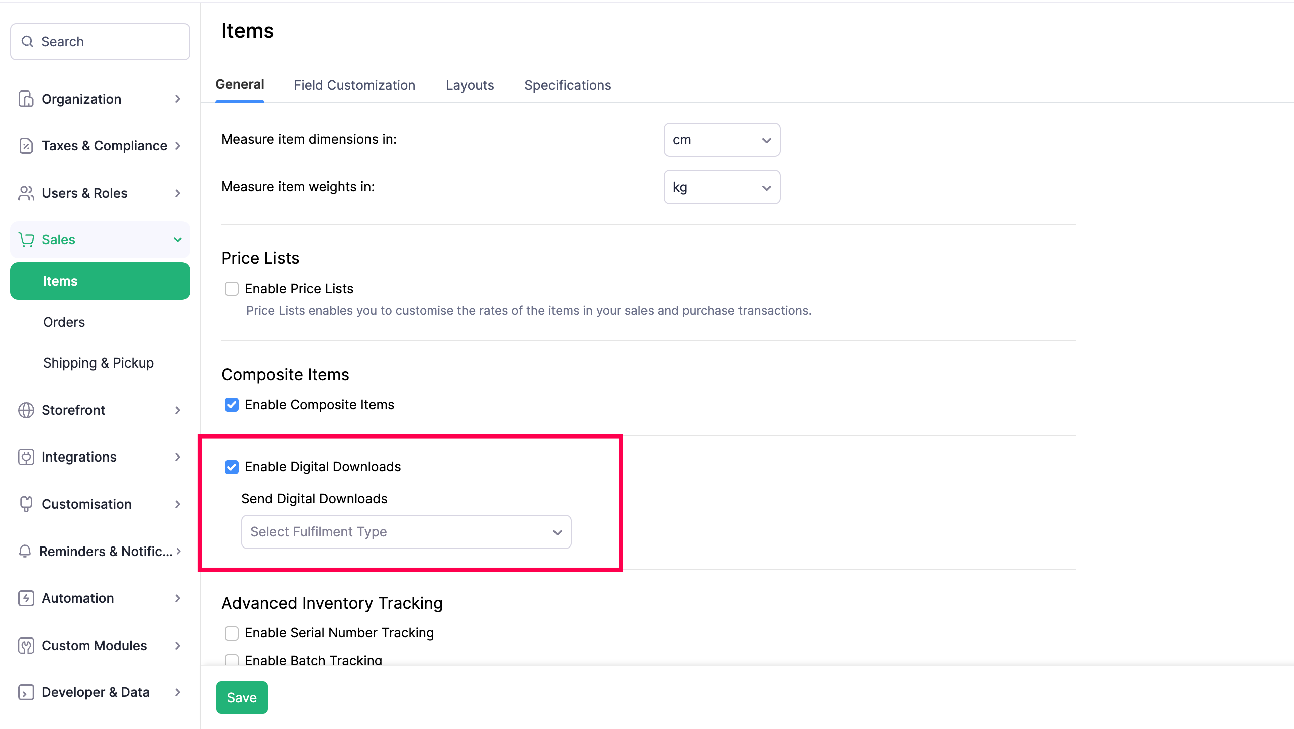 You can enable this feature to use advanced inventory tracking methods such as serial number tracking and batch tracking for your items. Here’s how: