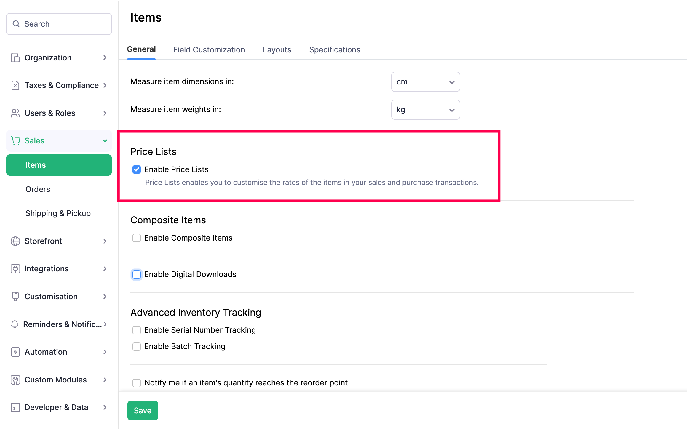 You can enable Price Lists to customize item rates for your sales transactions based on your business needs. Here’s how: