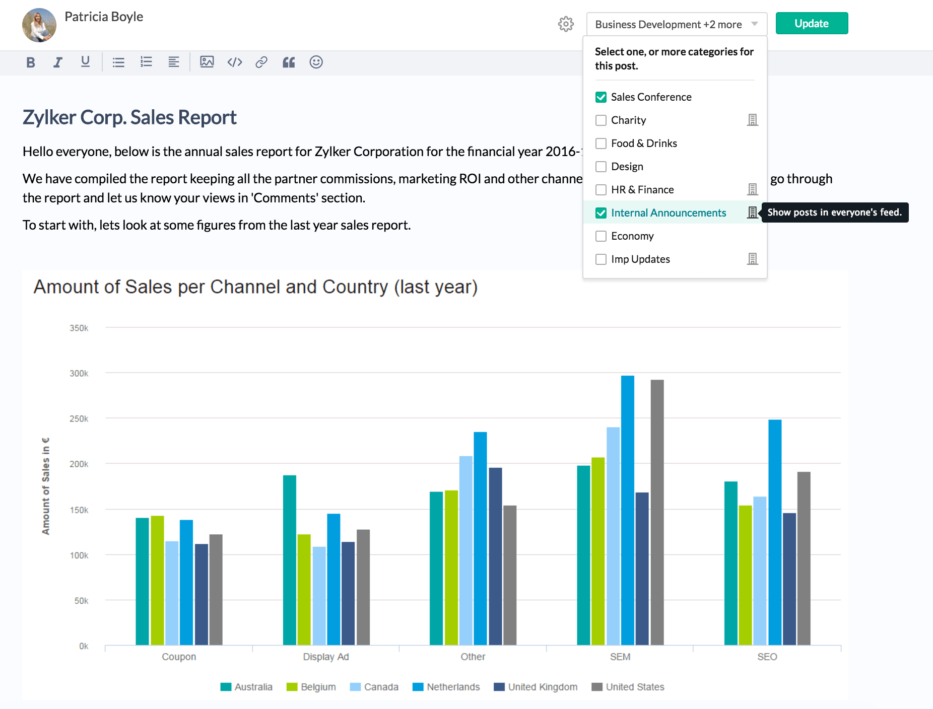 Bring context to the picture by associating your forum discussions with relevant categories. Configure important categories to push posts in them to everyone's feed.
