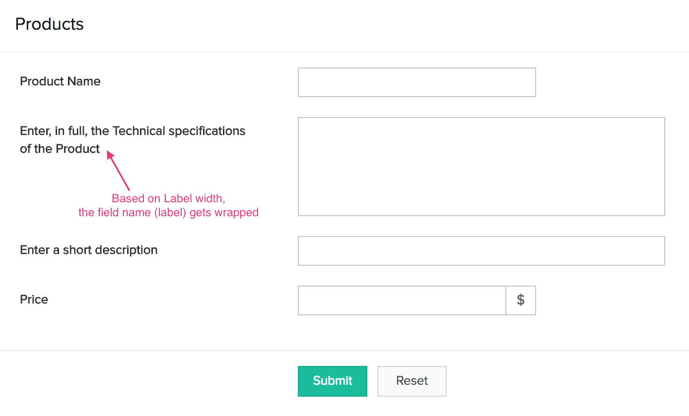 When a user accesses your form, Zoho Creator sets Label width based on the field (on your form) that has the longest label.
