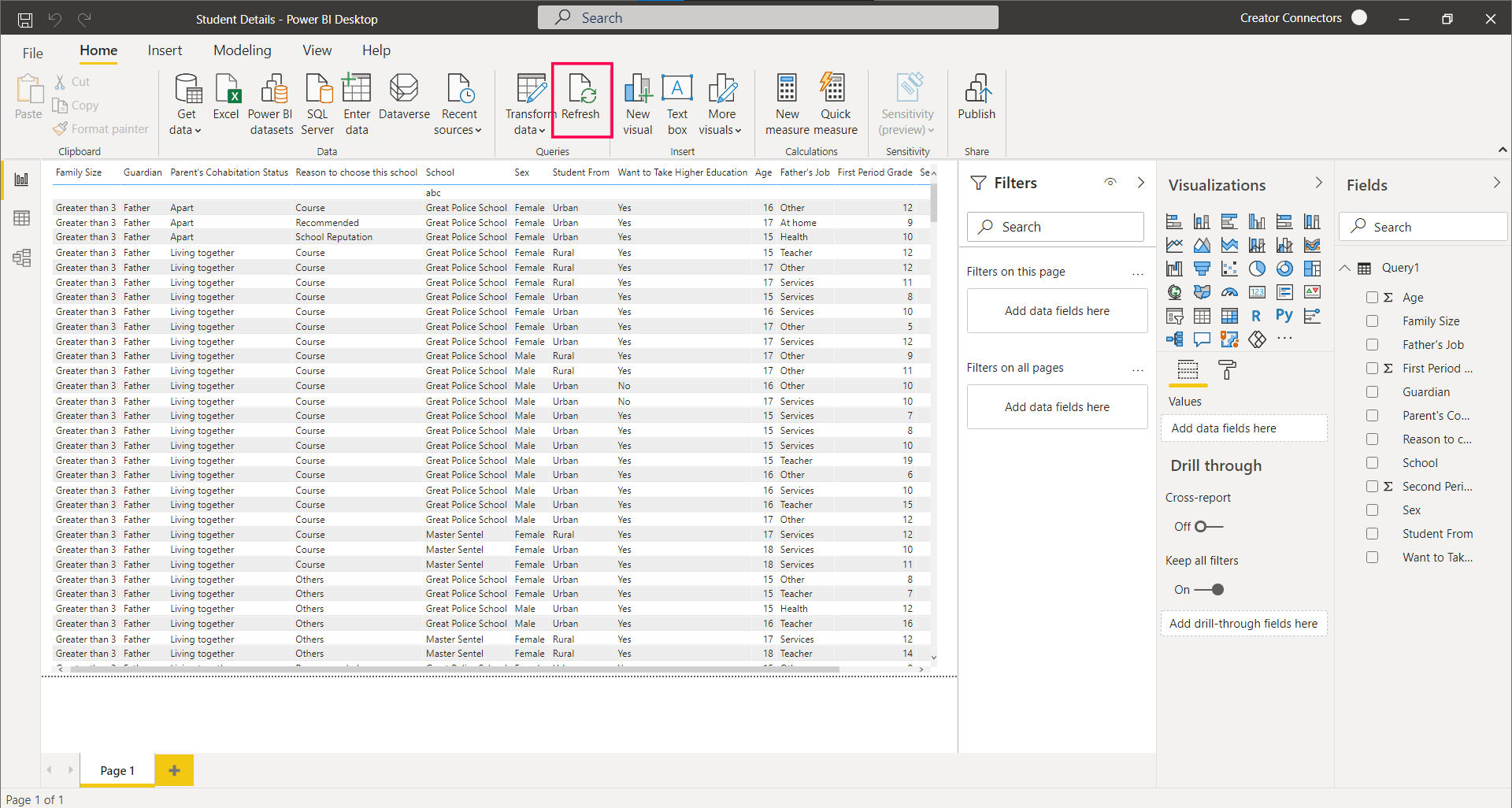 - Open your existing report in Power BI and click Refresh.