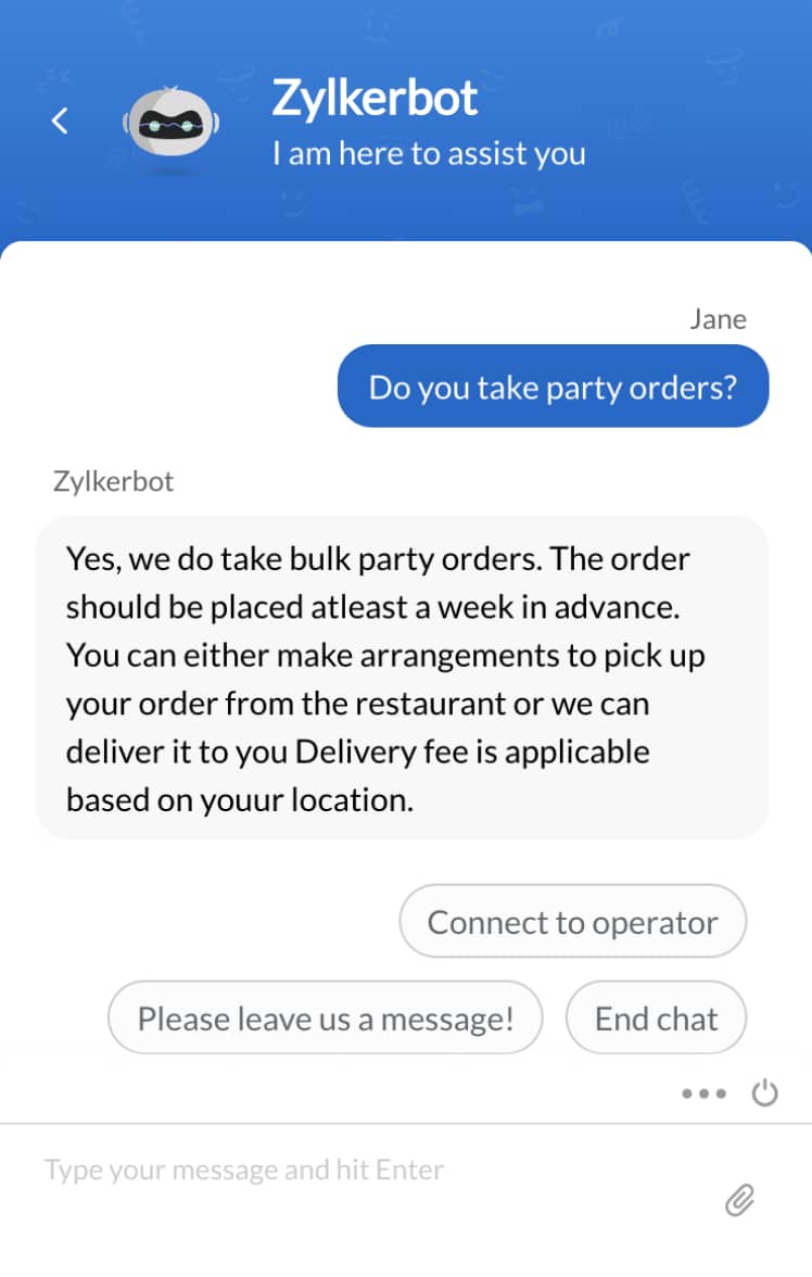 Bei hungrigen Mägen wirkt sich jede Sekunde, die auf die Beantwortung einer Anfrage gewartet werden muss, negativ auf die Geschäftsbeziehung aus. Unsere Plattform zur codefreien Chatboterstellung unterstützt Sie dabei, Wartezeiten komplett zu eliminieren, ohne dass dafür Programmierkenntnisse erforderlich sind. Unsere Botplattform hilft Ihnen auch dabei, intelligente Unterhaltungsbots zu erstellen die auf KI-Technologie wie IBM Watson, Dialogflow oder Zia, unserer eigenen intelligenten Assistentin; basieren.