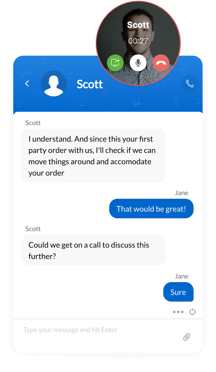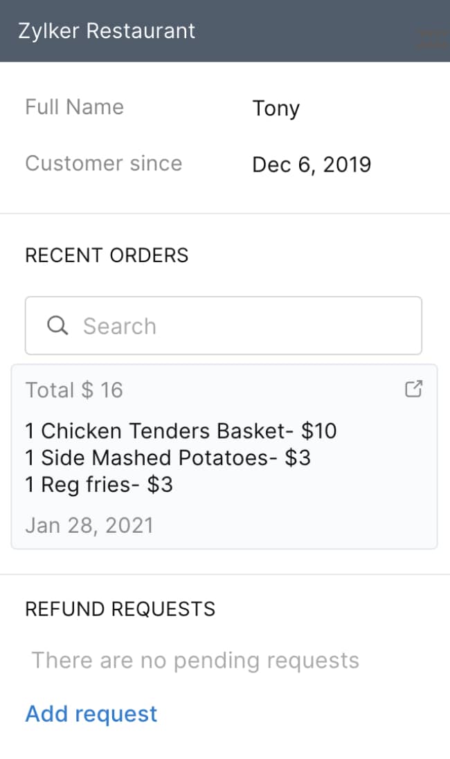 Erstellen Sie Widgets, um alle Details, die Sie während des Gesprächs mit einem Kunden benötigen, neben dem Chat anzuzeigen. Dabei handelt es sich u. a. um Bestelldetails, die Lieferverfolgung und geäußerte Sonderwünsche. Sie können auch Aktionen wie die Erstattung von Rechnungsbeträgen bei unzufriedenen Kunden und die Protokollierung von Problemen in Ihren internen Kanälen ausführen.