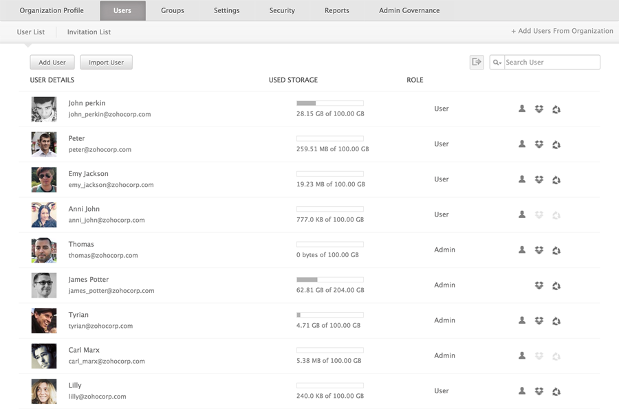Manage your organization's cloud storage and expand it when necessary. Monitor and control the overall storage used by every member in your company.