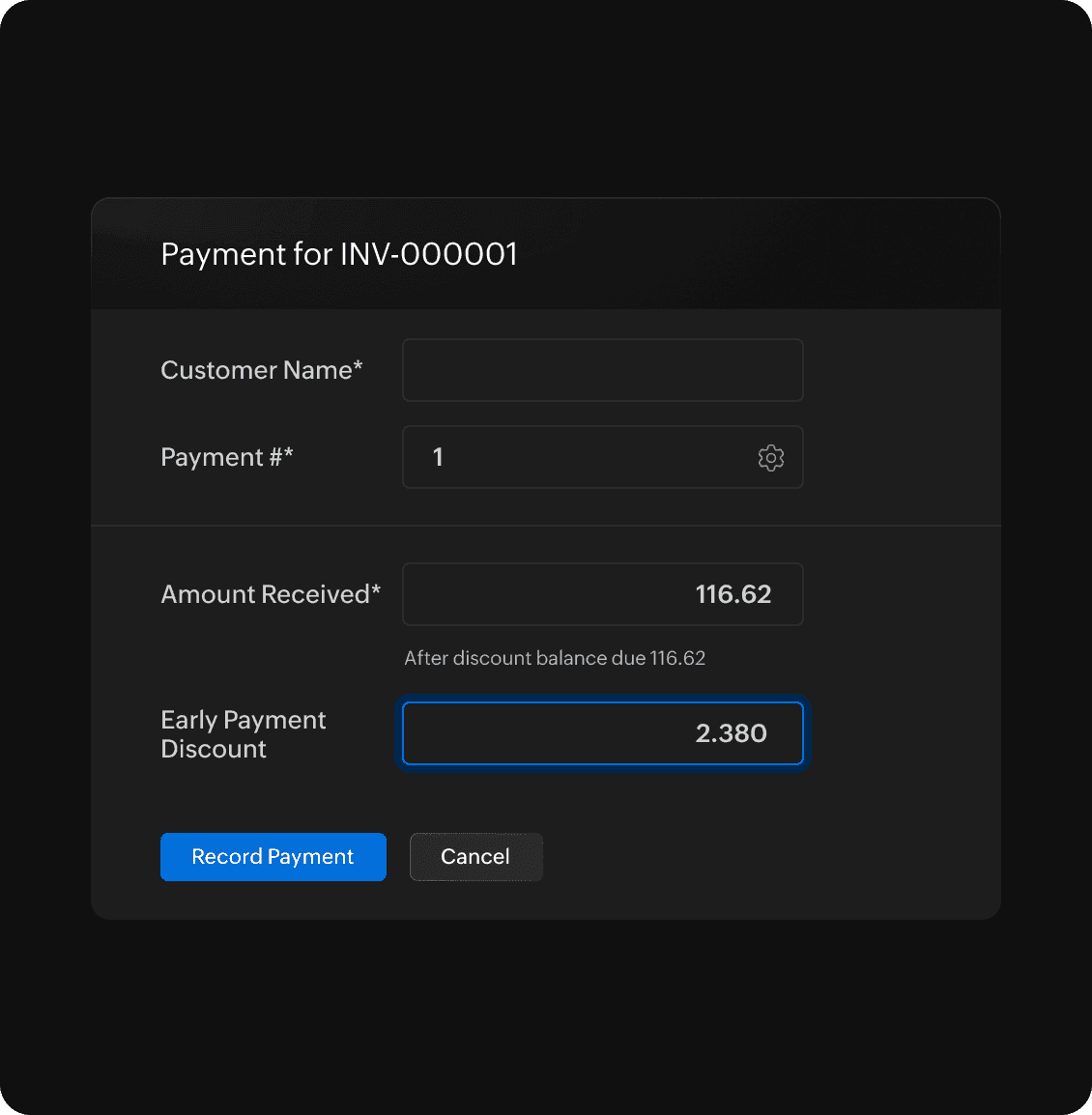 Zoho Books offers flexibility to your customers by supporting multiple payment methods. Your customer will always have an option that works best for them.